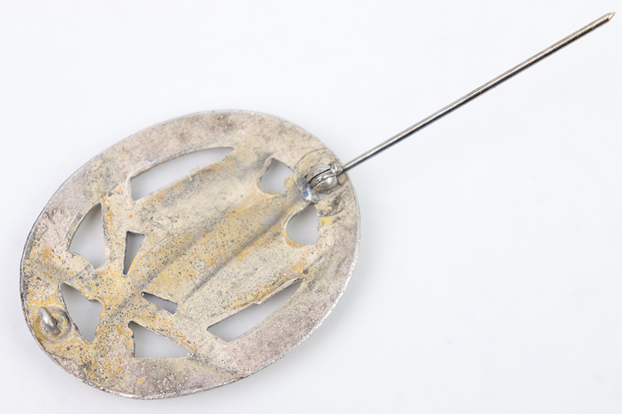 2/21/23 – This is an original WW2 German General Assault Badge. The medal is zinc, non-magnetic construction with no maker markings or stamps on the interior. The original hook, hinge, and pin are all intact and functional. As shown, there’s surface patina and mild wear throughout this example, but no major issues.