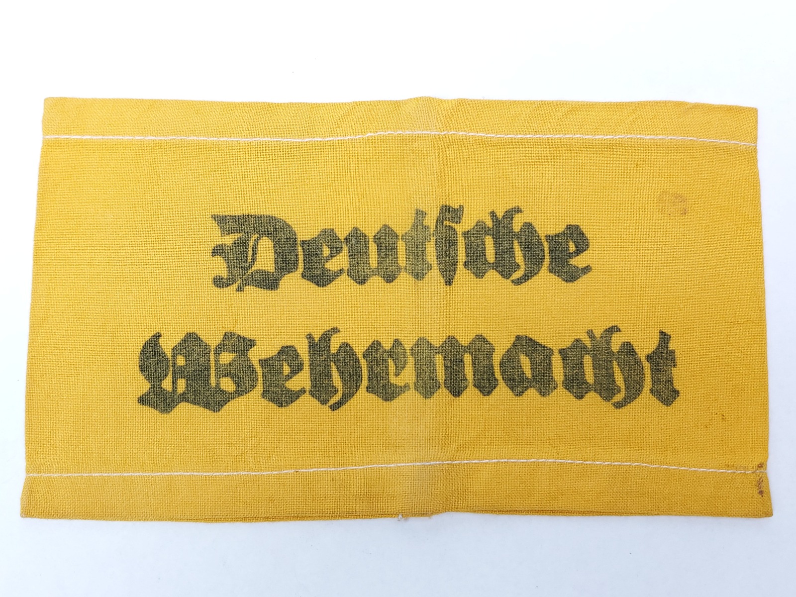 8/6/20 – This is an original German civilian service to the armed forces, or Wehrmacht armband. Often worn by uniformed German personnel who were attached to the Armed Forces during WWII, while occupying another country. This armband is in great overall condition with stitching in tact, and some light fading of the ink inscription on the front. No interior tags.