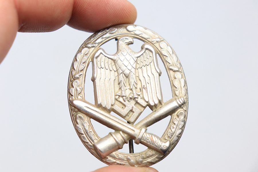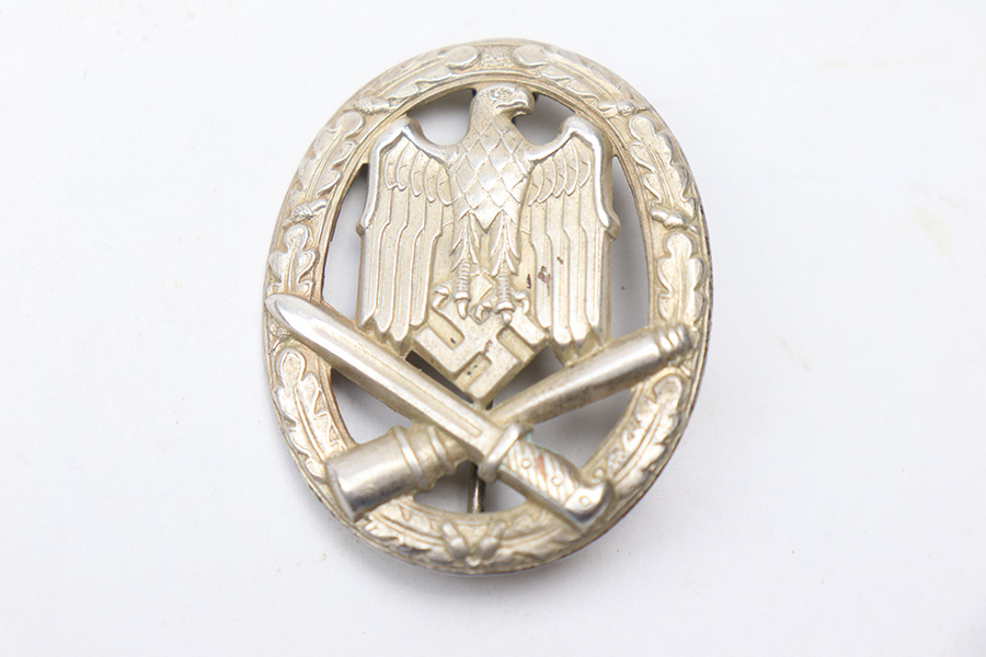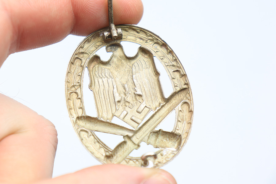 4/13/22 – This is an original WW2 German military General Assault badge. The medal is one piece construction and in great overall condition. Non-magnetic throughout with functional hardware.