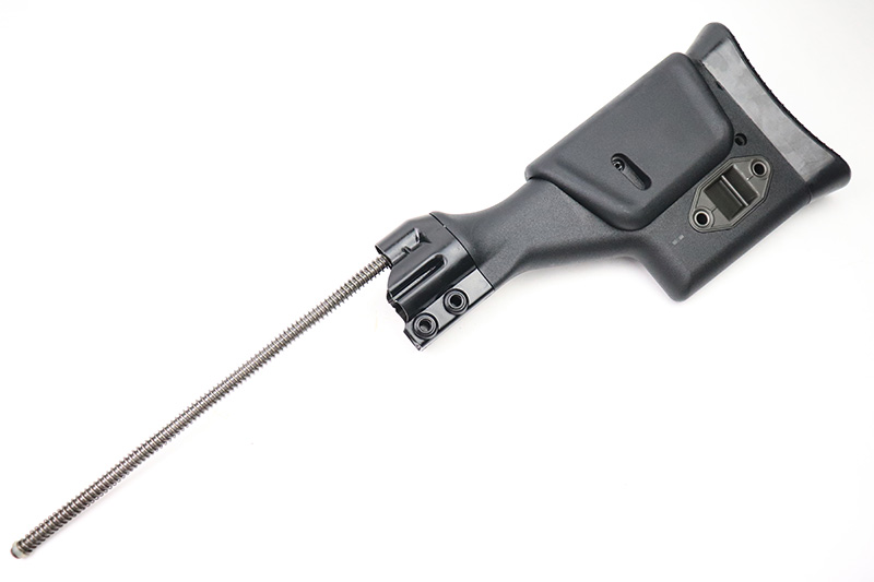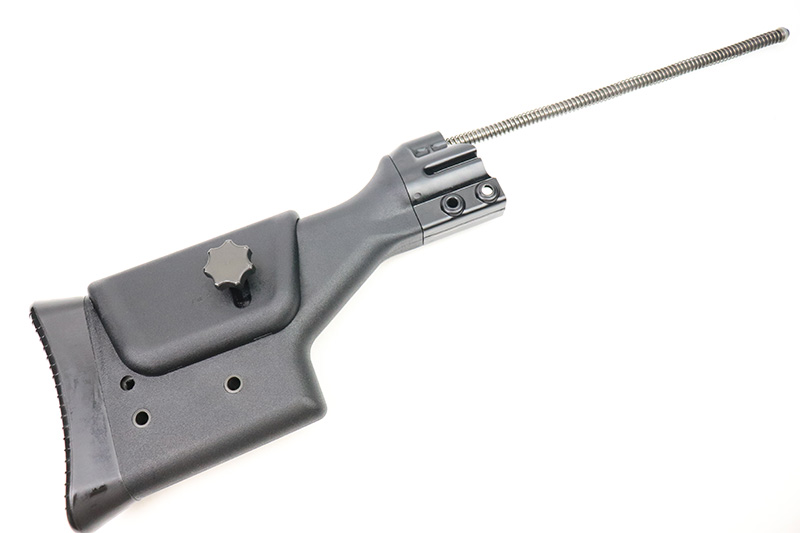 9/15/22 – This is a complete HK German PSG1 rear stock assembly. No longer made or in production. “This is the most sought after HK adjustable stock ever offered. Each stock will fit all HK G3 & HK 91 and PTR weapon systems as well as the MSG90 & PSG1 rifles. This stock is also perfect for custom HK builds. Each stock features an enhanced buffer system and is fully adjustable for both length of pull and cheek weld.” The stock is in minty condition with letters “IS” stamped on both sides.