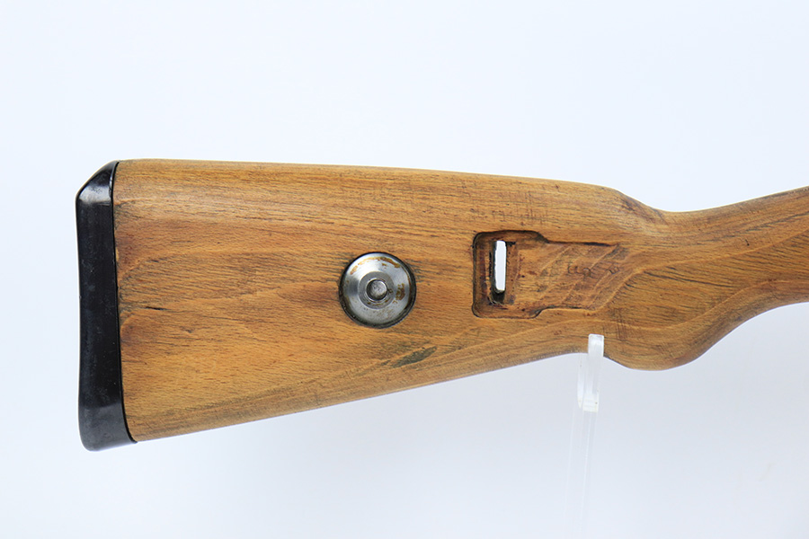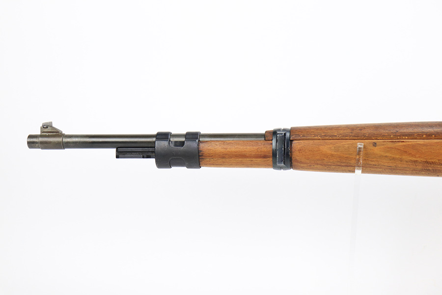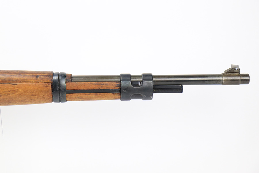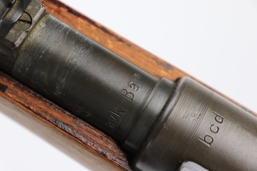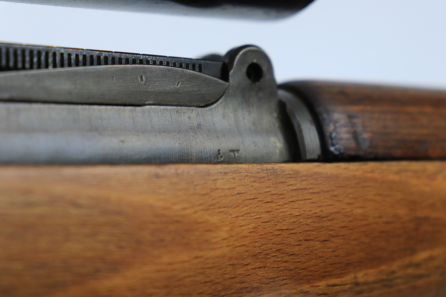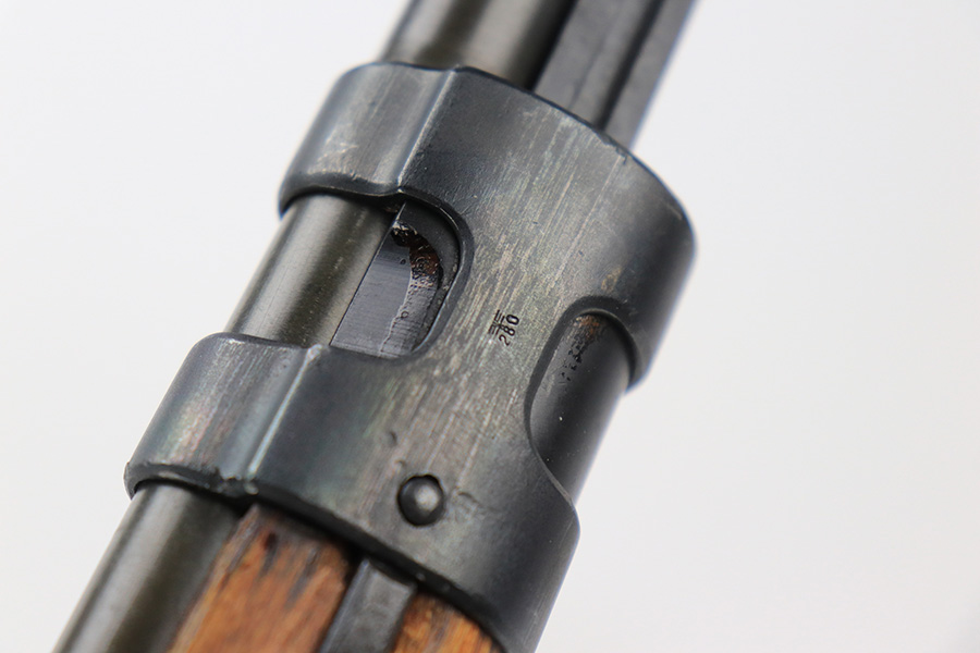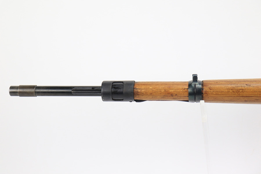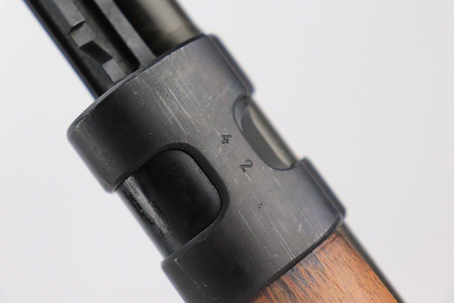 7/14/23 – This is a cool Gustloff Werke K98 that was built into a long side rail style sniper rifle. The base rifle/receiver has an excellent, original phosphate finish. The bands are refinished, as is the trigger housing/floorplate. The rifle has a vintage commercial scope that is marked 8×42 and has clear optics. The stock is in great shape with waffenamt on right face, but was lightly sanded at some point.