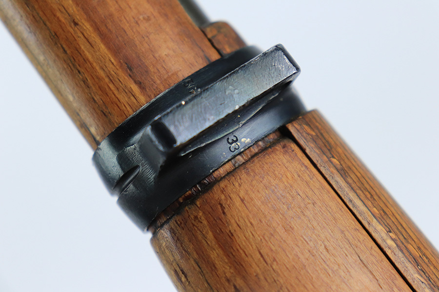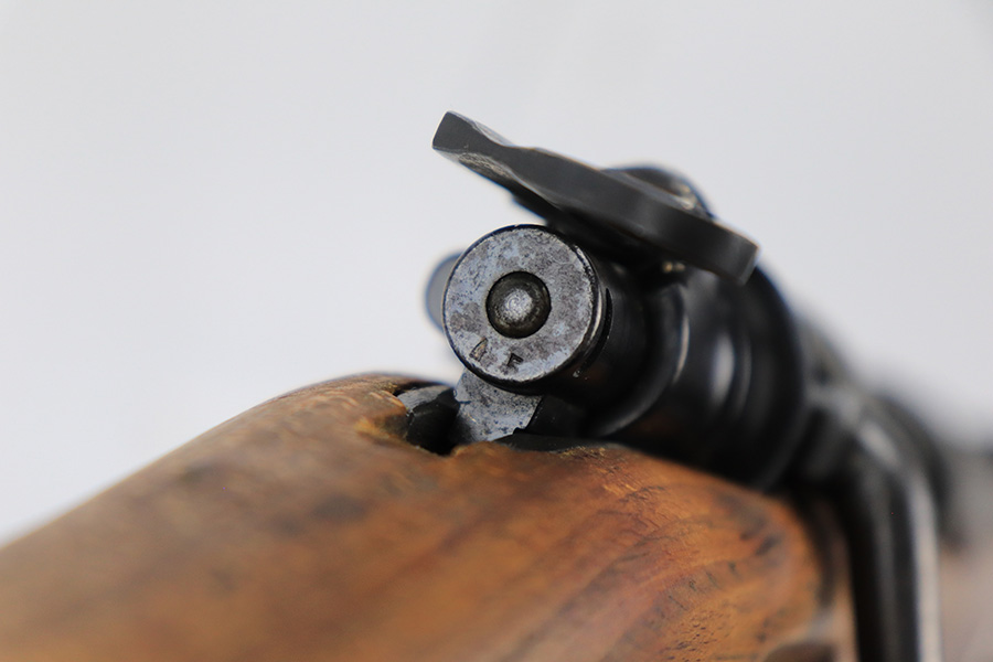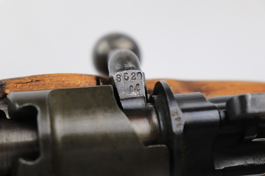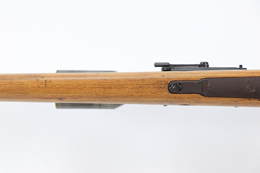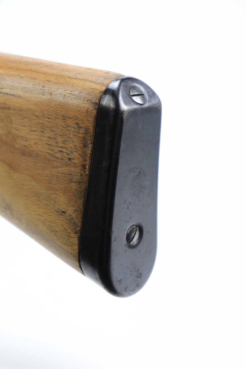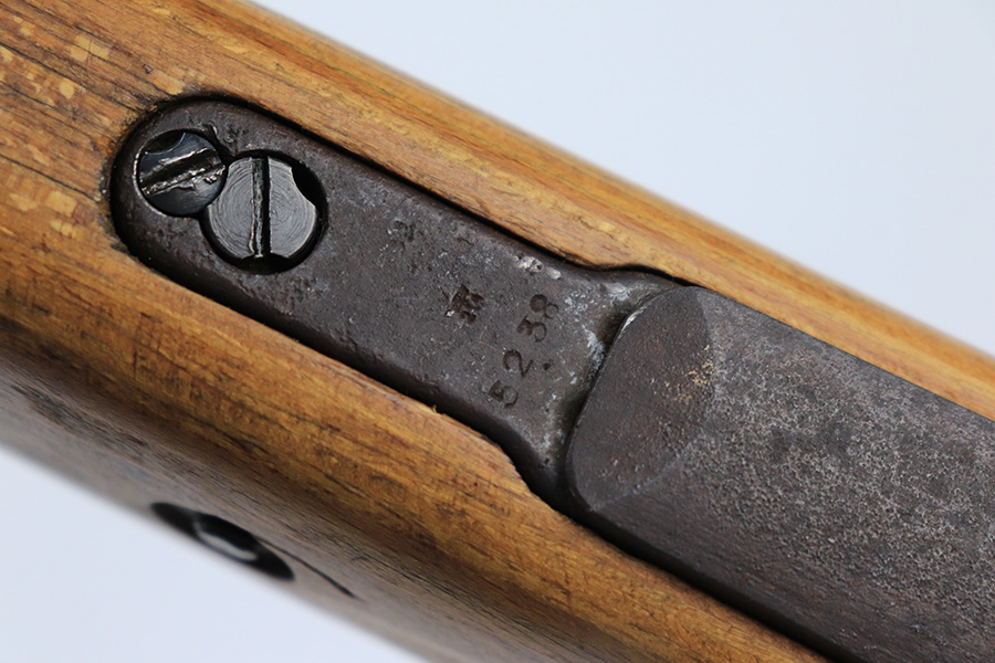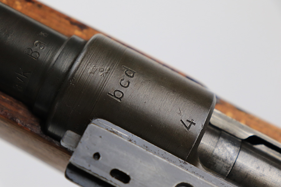 7/14/23 – This is a cool Gustloff Werke K98 that was built into a long side rail style sniper rifle. The base rifle/receiver has an excellent, original phosphate finish. The bands are refinished, as is the trigger housing/floorplate. The rifle has a vintage commercial scope that is marked 8×42 and has clear optics. The stock is in great shape with waffenamt on right face, but was lightly sanded at some point.