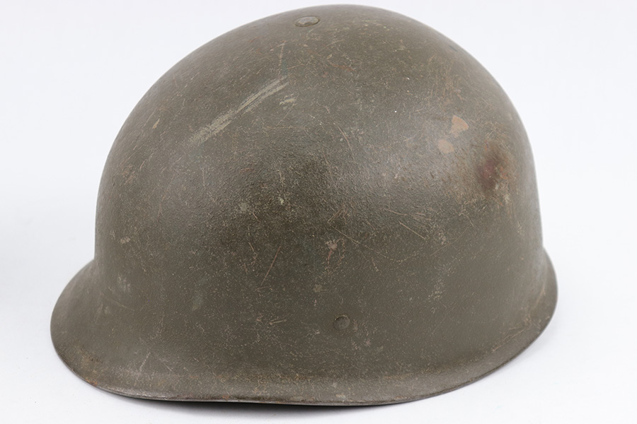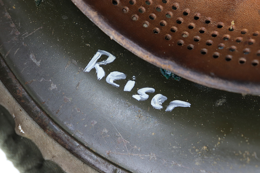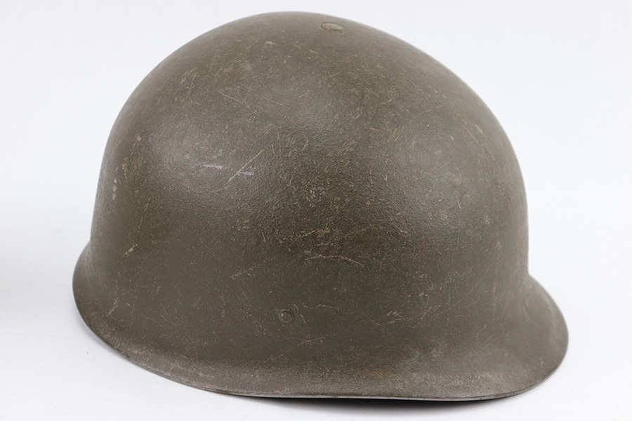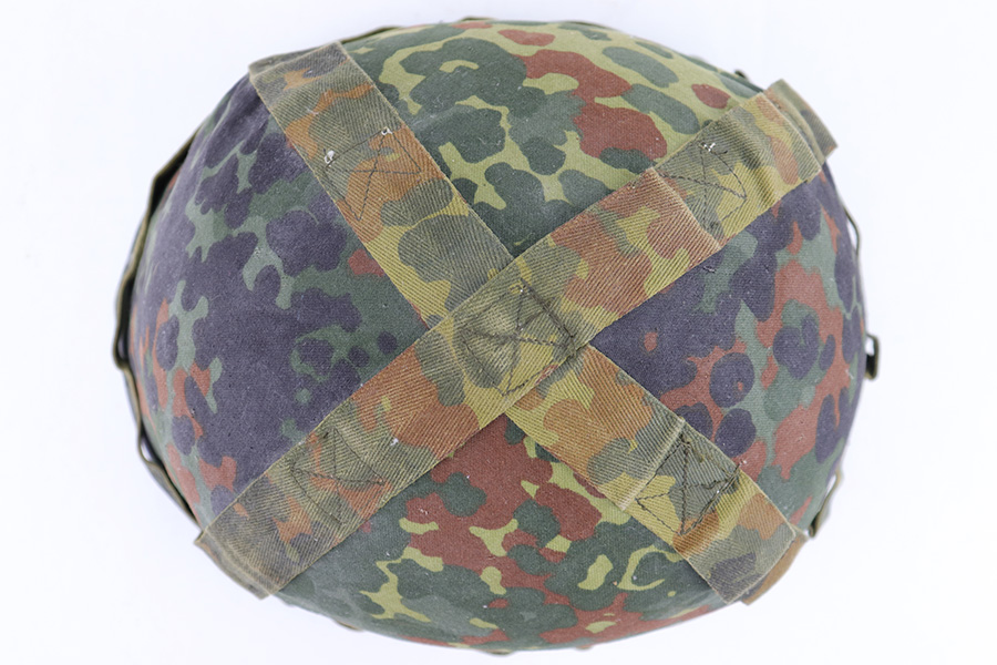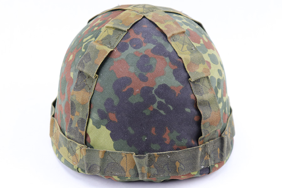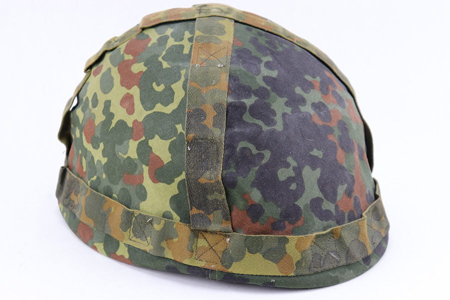 7/18/23 – This is a post WW2 production German M60 steel helmet. Interestingly, the helmet is more like the US M1 style helmet than the other German predecessors. The helmet comes with a camo cloth helmet cover, original leather liner, and canvas chin strap. The camo cover is 1 sided and ink stamped “S 57-61” on the interior. No holes or notable issues and great overall condition. The shell has some mild surface scuffs and typical aging wear but no dents or major issues. The interior shell is stamped on the folded brim “VDN83”, and the interior shell is size marked “55-57”. The leather liner is also ink stamped with the same size stamp. Excellent condition leather with some mild wrinkling and light use wear. No issues with the chin strap either.