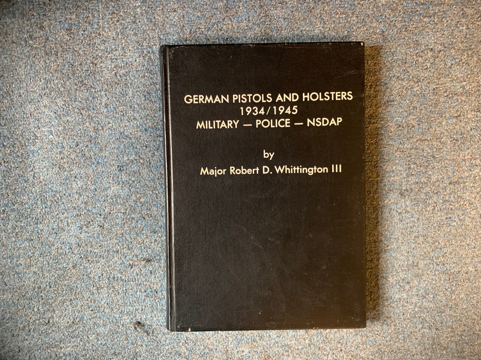 3/26/21 – This is a nice copy of Bob Whittington’s “German Pistols and Holsters” Book. Minor wear on the cover.