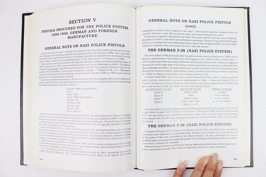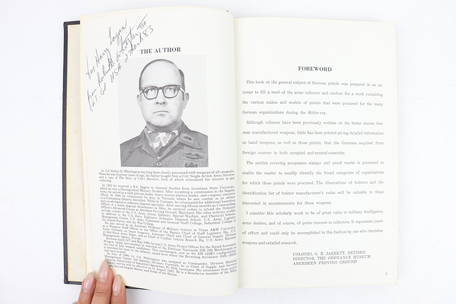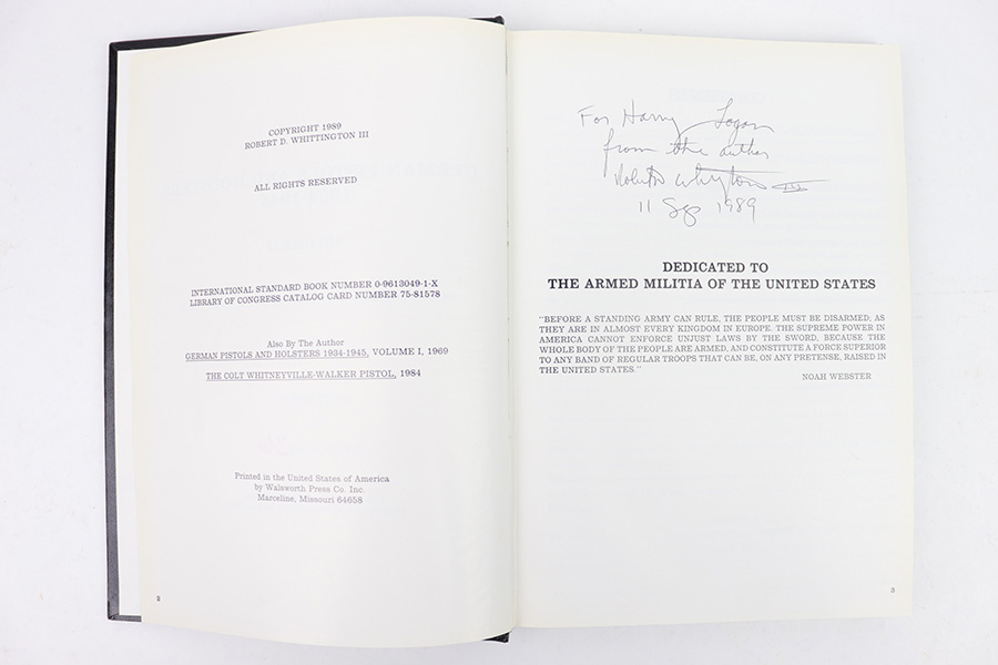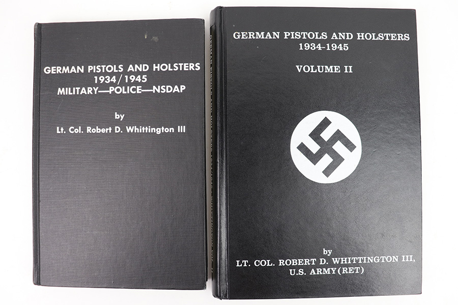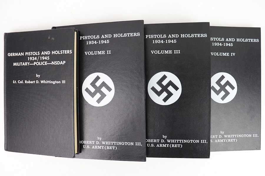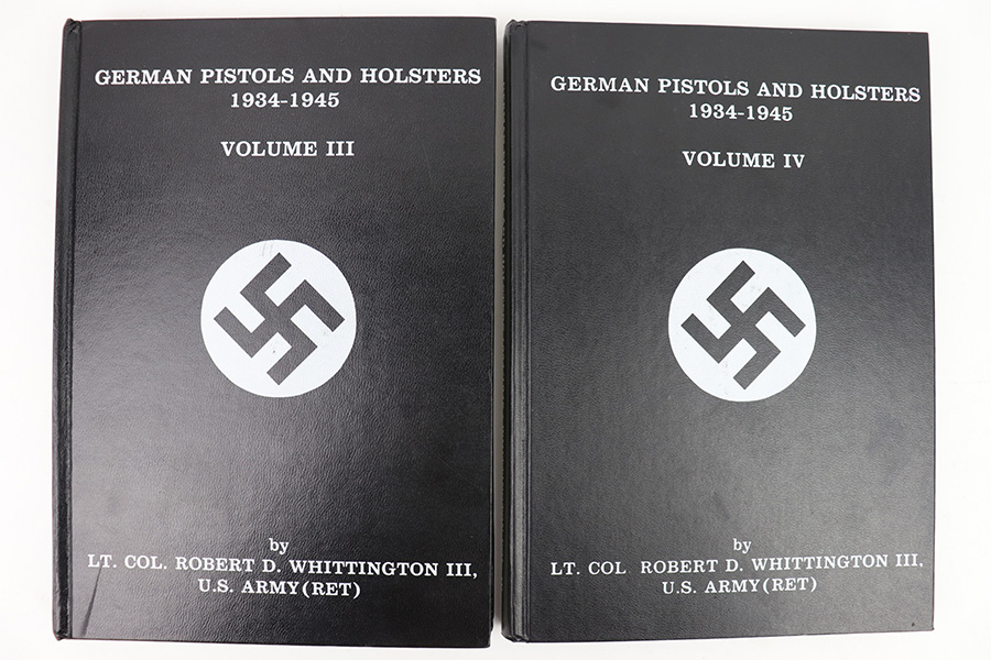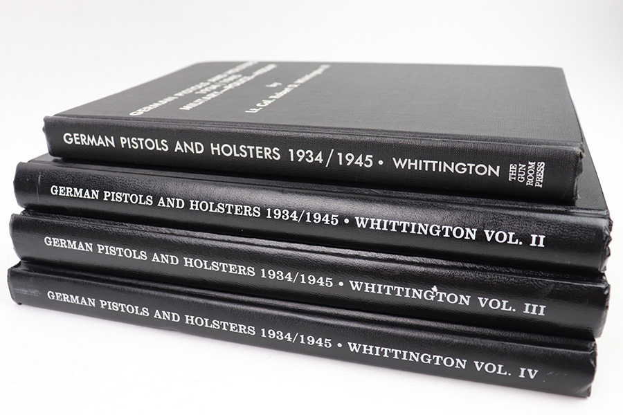 2/10/23 – This is a complete 4 Volume Set of Whittington’s Resource Books, covering various WW2 German pistol and holster topics. These are rarely seen together. It is an excellent resource on WW2 German pistol and holster variations and we wholeheartedly endorse them. Volumes 1 & 2 are signed and dedicated to a previous owner by the author. Volumes 1 & 2 also have some small handwritten annotations on a few pages. Aside from that, all 4 Volumes are in excellent shape and the pages are nice and crisp.