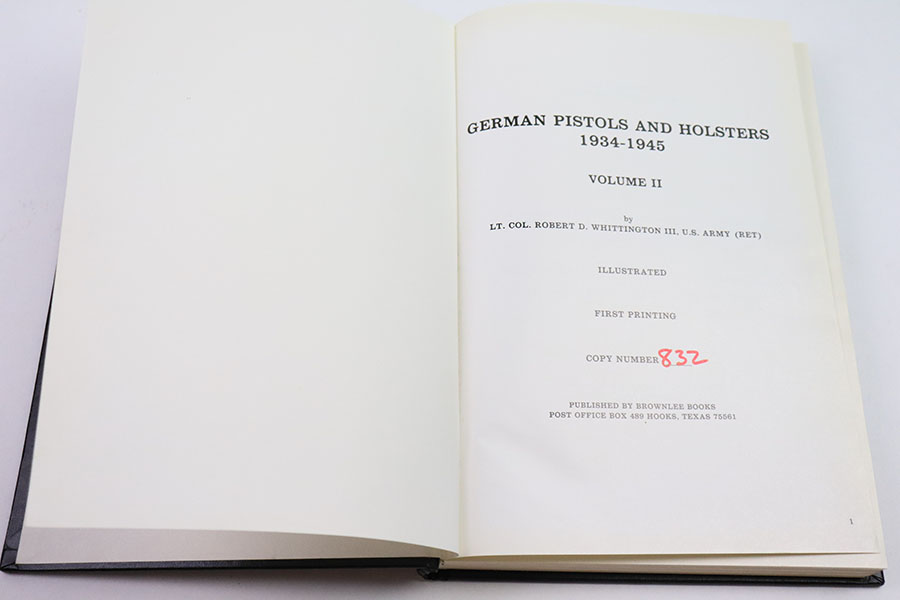 10/12/22 – This is a great example of Bob Whittington’s “German Pistols and Holsters 1934-1945 Volume II”. The hardcover is in great condition overall with a few handling marks here and there. The page edges are clean and the pages are well kept. There is minimal damage to the lower corners of the cover and the binding is in great shape. Overall, an excellent add to a library as a lightly used resource that is helpful to collectors in regards to WW2 era German pistols and holsters.