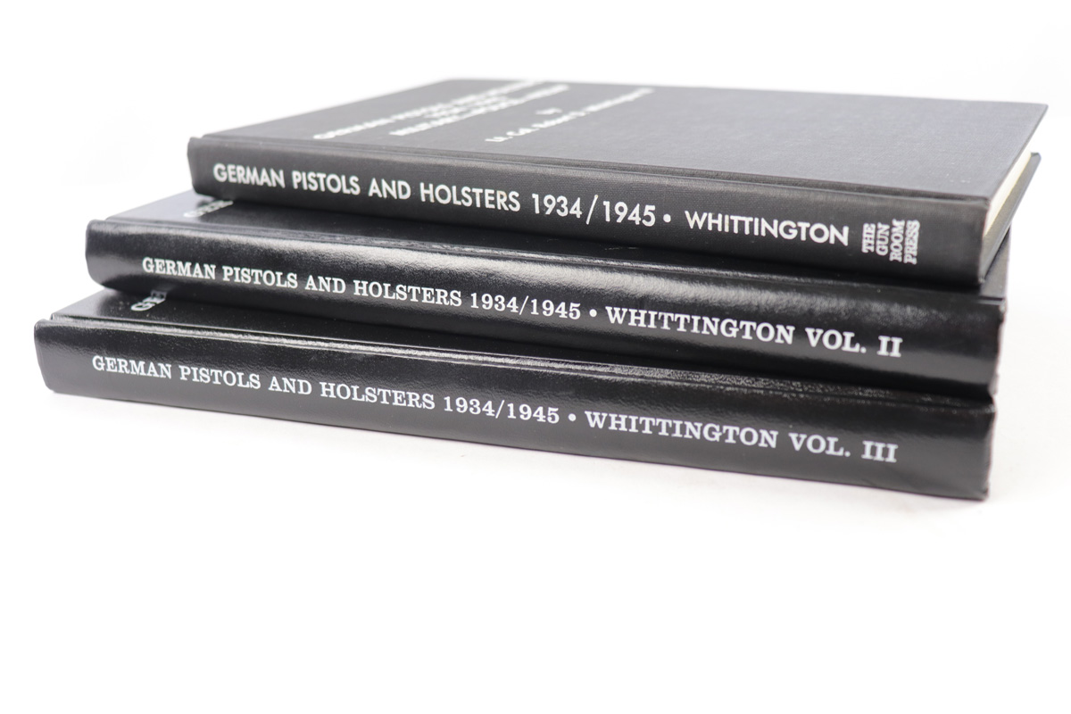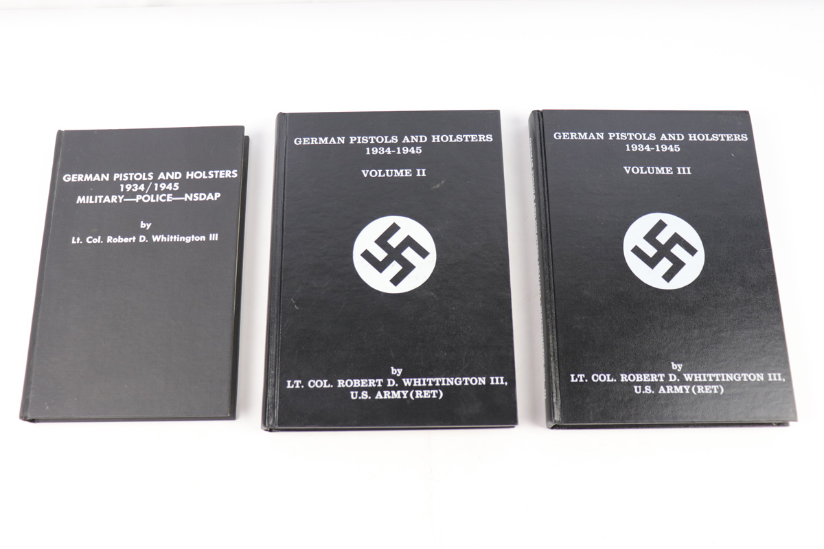 8/2/21 – We have the first 3 Volumes of Col. Robert D. Whittington’s research on German Pistols and Holsters from 1934-1945. All three volumes are hardcover and in excellent condition. The books are not specifically the copies shown in photos, but are very similar condition. These books are great collector resources and have extensive research on the subject. Volume 1 is 223 pages, Volume 2 is 312 pages, and Volume 3 is 352 pages. All excellent condition.