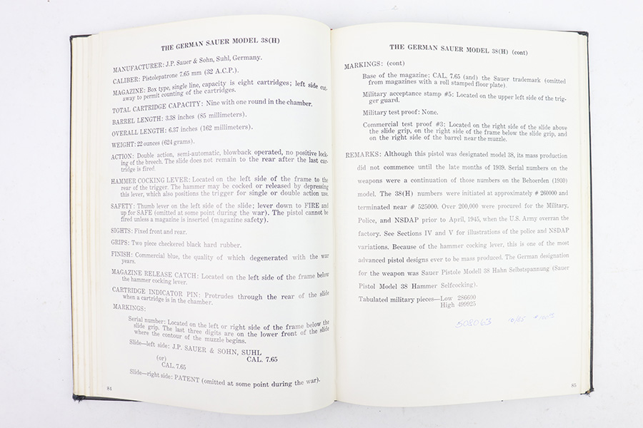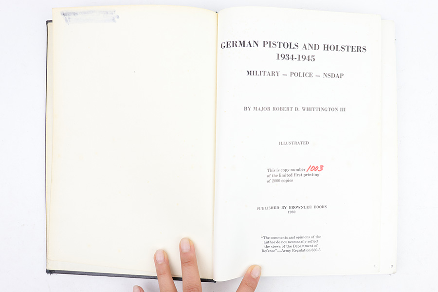 3/10/23 – This is an original copy of Robert D. Whittington’s German Pistols & Holsters Volume 1. The book is in great condition with some cosmetic wear on the hardcover exterior. The book has a few pages with some handwritten annotations. However, all the pages are in great shape. This is Volume 1 of Whittington’s 4 Volume set. This is an excellent resource on German Pistols and holsters from WW2.