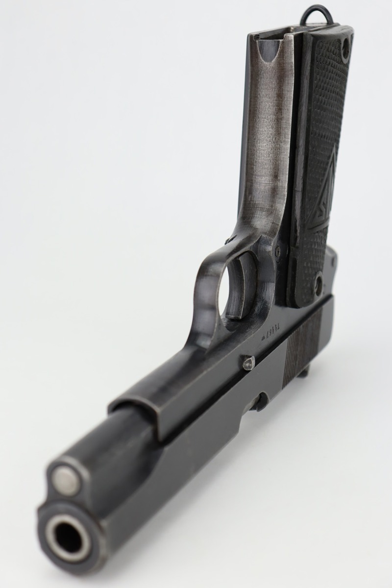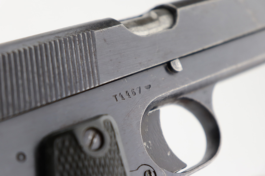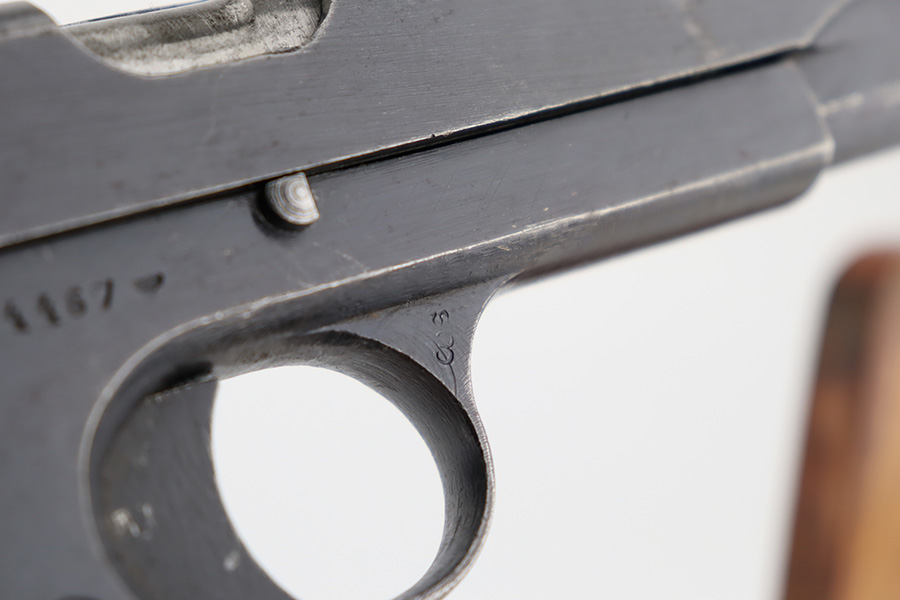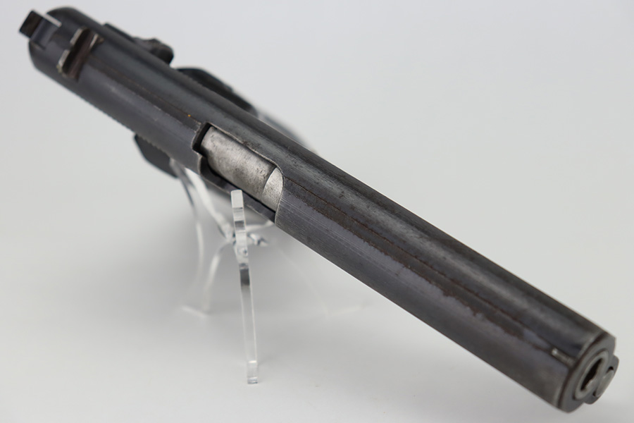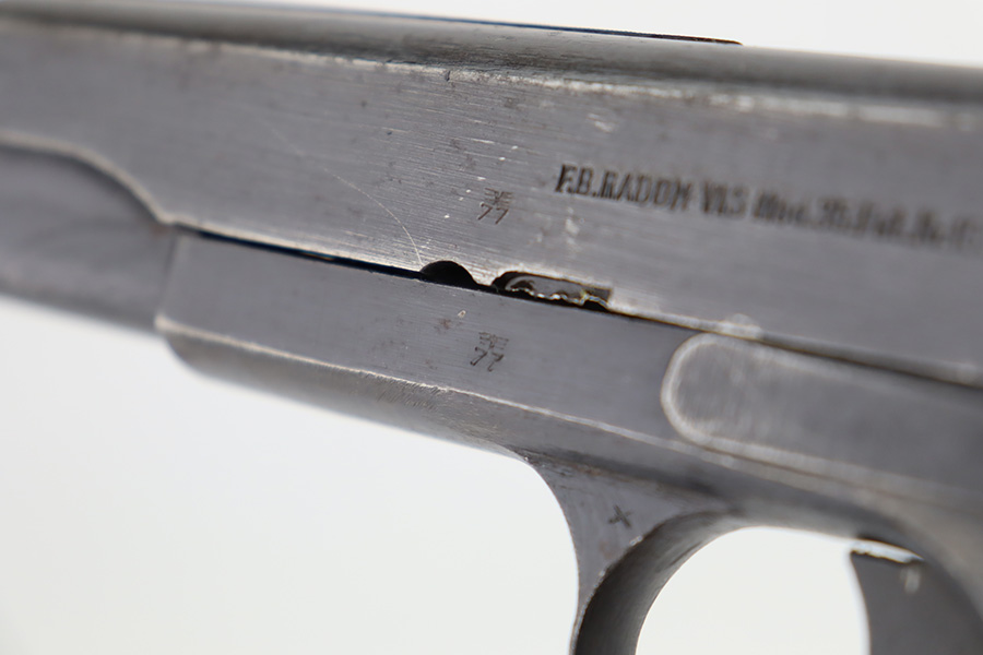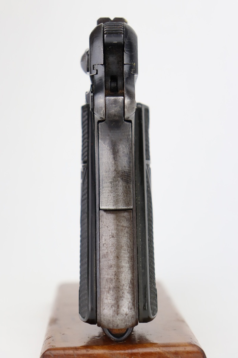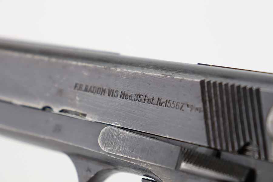12/6/23 – This is a nice example of a Radom VIS 35 issued to the German military during WW2. It is all matching with the proper “Waffen 77” and “Eagle 623” military acceptance proofs. This is an earlier variation with 3 levers. It has retained roughly 85% of its original wartime finish. The majority of the wear is on the grip straps, but there is also general high edge wear and areas of light spotty oxidation throughout. Fitted with very nice period-correct black bakelite grips. Comes with a period-correct un-marked magazine. Mint bore.