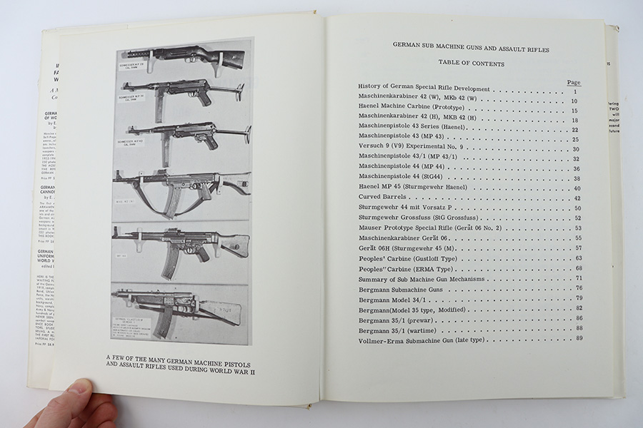 12/8/23 – This resource book provides an overview and catalog of all the WW2 German submachine guns and assault rifles. Covers the development of these weapons as well. Great history and reference book. Lightly used with original hardcover and cover sleeve intact. All pages are in great shape.