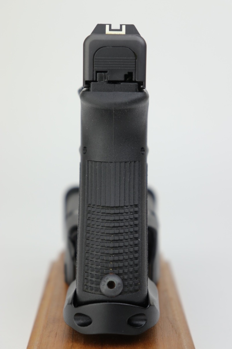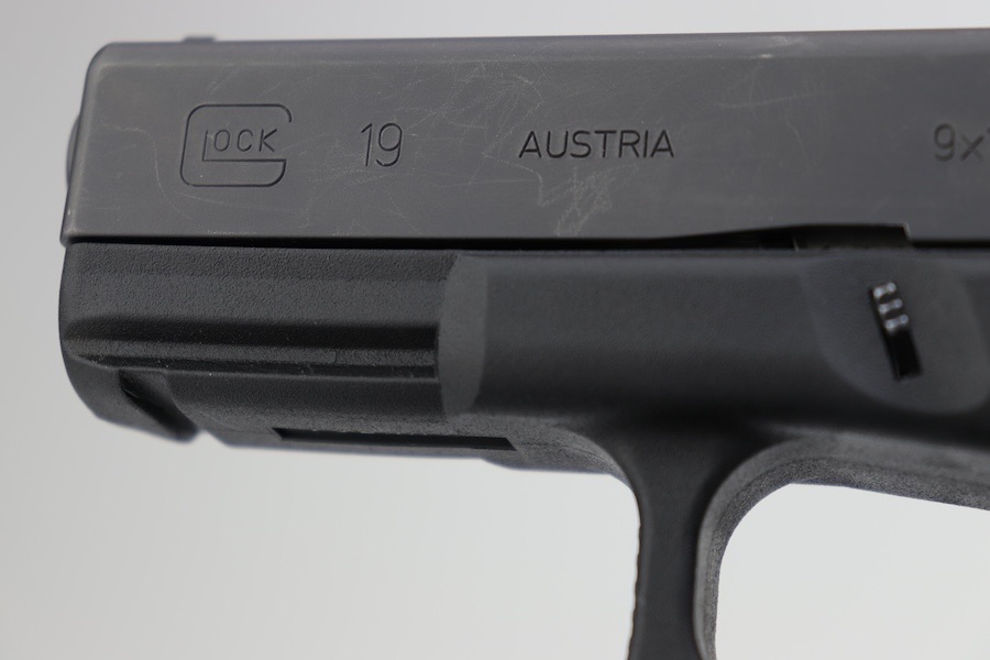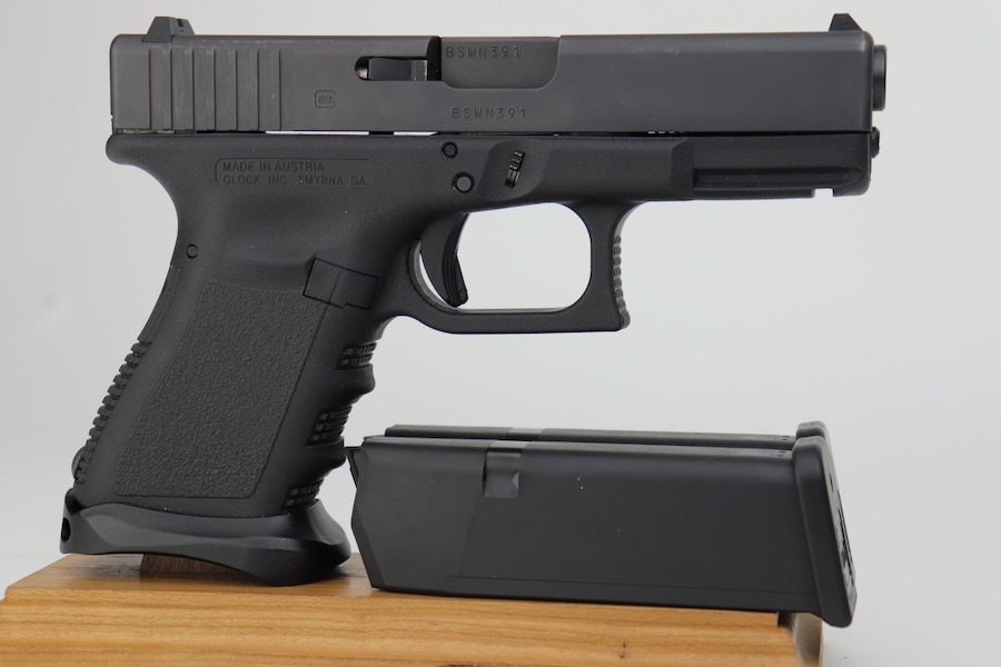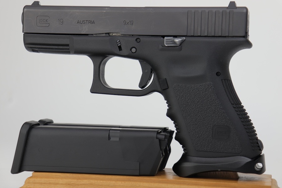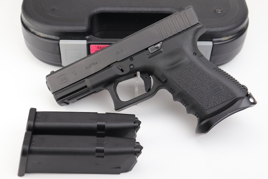 6/11/24 – This is an excellent condition gen 3 Glock 19. This pistol has been modified with a flared mag well and an extended slide release. The slide has minor use wear. Bore is. a 9.5/10. Included with the handgun are two 15-round magazines and the original matching box. Fully functional and ready for use.