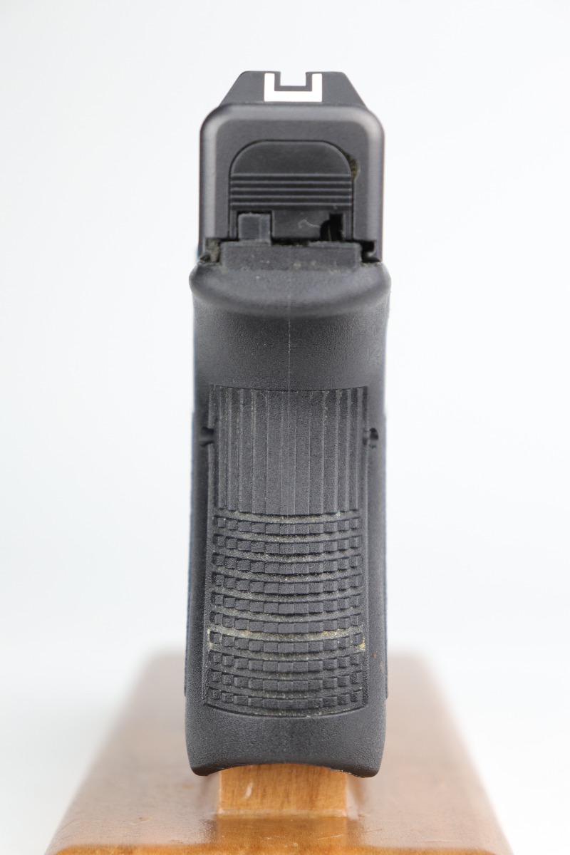 9/15/20 – This is a like-new Glock 27 semi auto pistol, chambered in .40 S&W. No obvious signs of wear. The bore is minty. The gun is fully functional and comes with one, finger extension, 8-round Glock magazine. 3.25″ barrel. We believe it is a Gen 3.