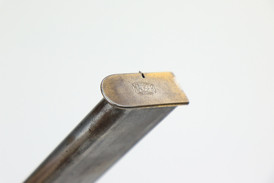 4/29/22 – This is a very nice example of a Mauser Model 1934 that was sold in the commercial market in the 1930’s. It is matching and has the proper “Crown N” commercial proofs. The gun was entirely refinished and gold-plated. It has retained about 95% of its gold plating with very minor wear on the high edges of the slide and areas of pin-pricking mainly on the front strap, left side of the gun, and on the trigger. Comes with an excellent replaced wood grip and a period-correct magazine. The mag bottom was also gold-plated but is mostly worn. The bore has great rifling with very minor frosting in the grooves.