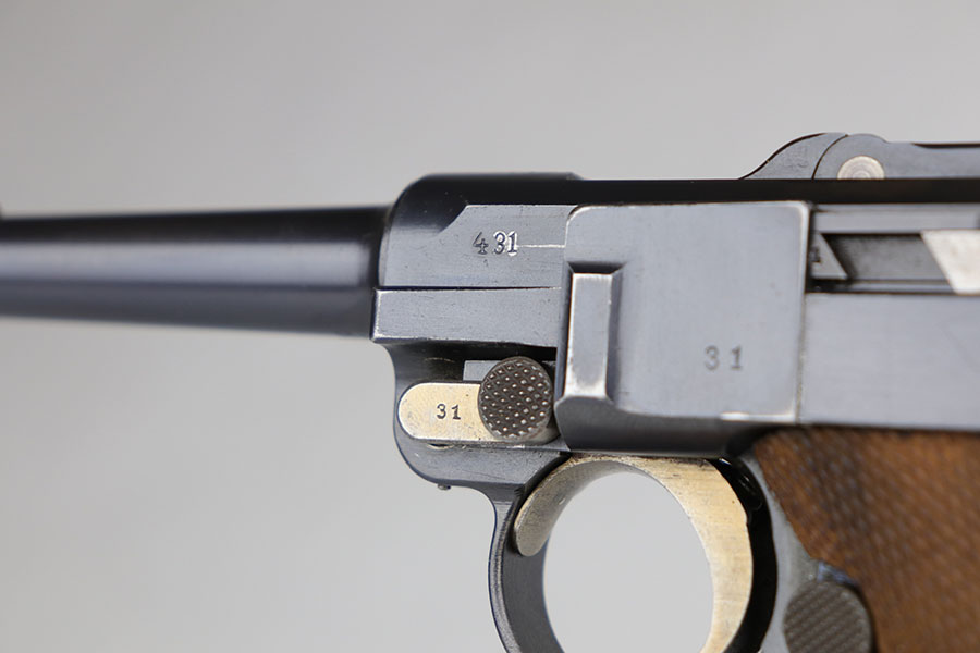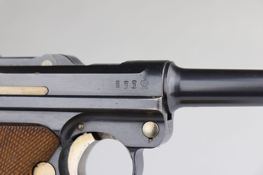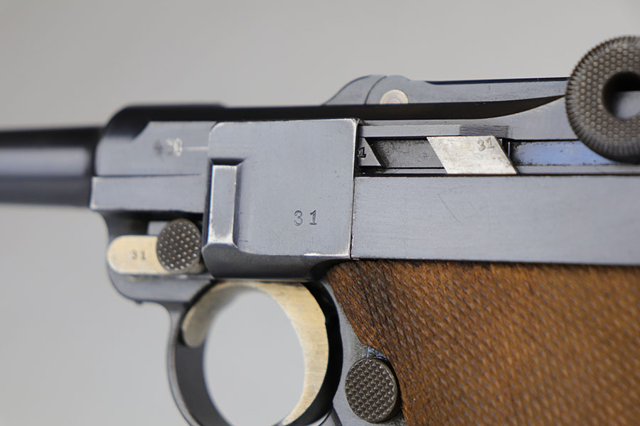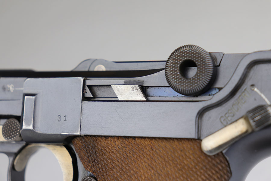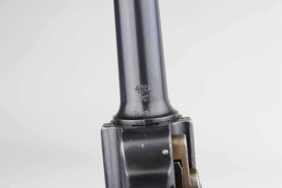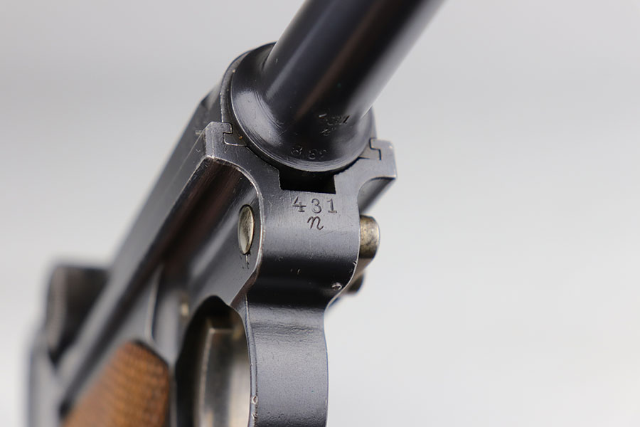 2/4/21 – This is a fantastic 1916 DWM Luger with super rare unit marking, indicating issue to the field recruitment depot of the Landwehr division. There’s only a few others known with this marking. The pistol is all matching and has 98% of the original blue, with just a bit of standard high point wear. Small parts have beautiful straw. The original, matching grips are present and in similar condition to the gun. The magazine is period original but mismatched. Bore is mint.