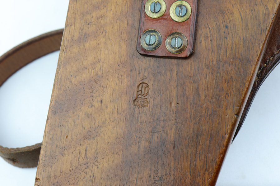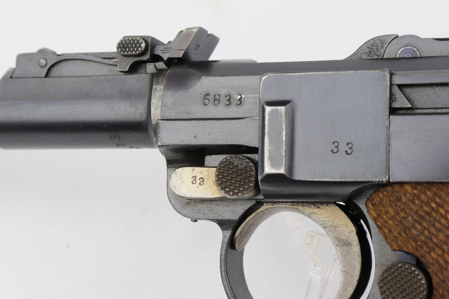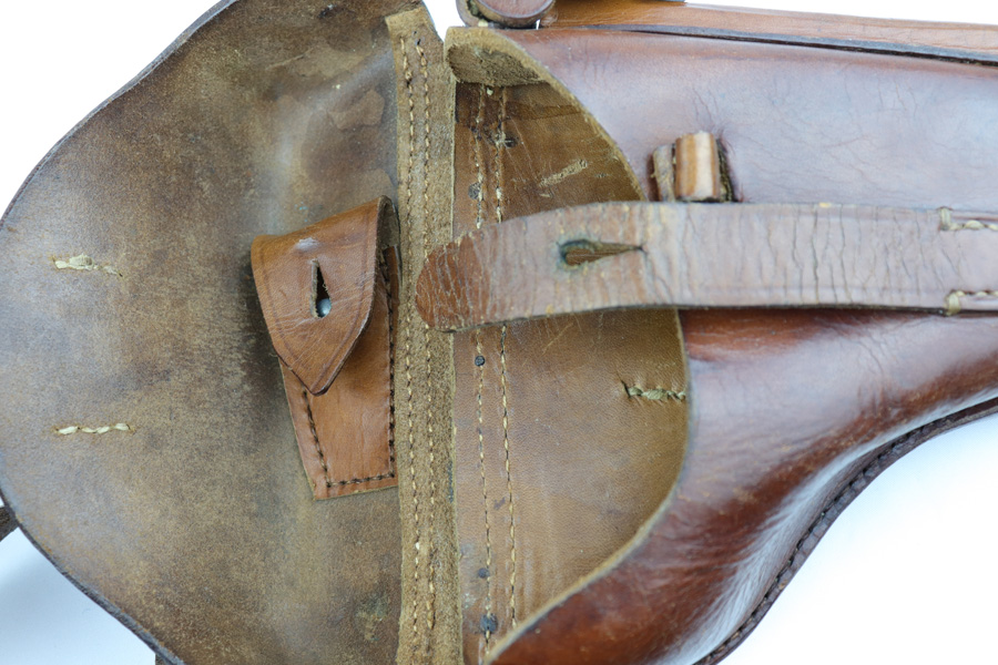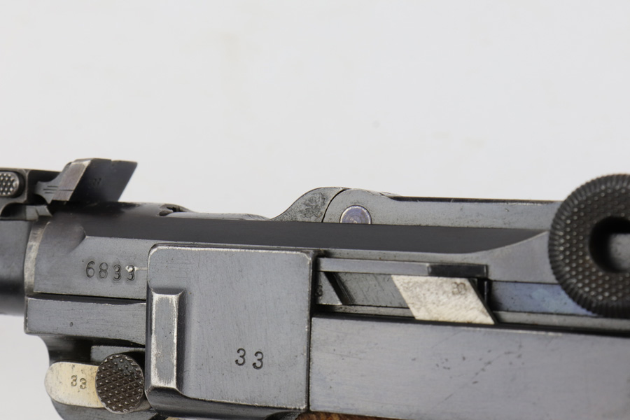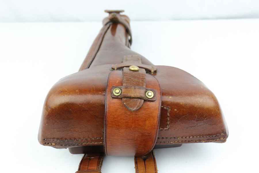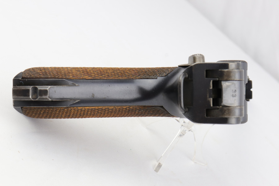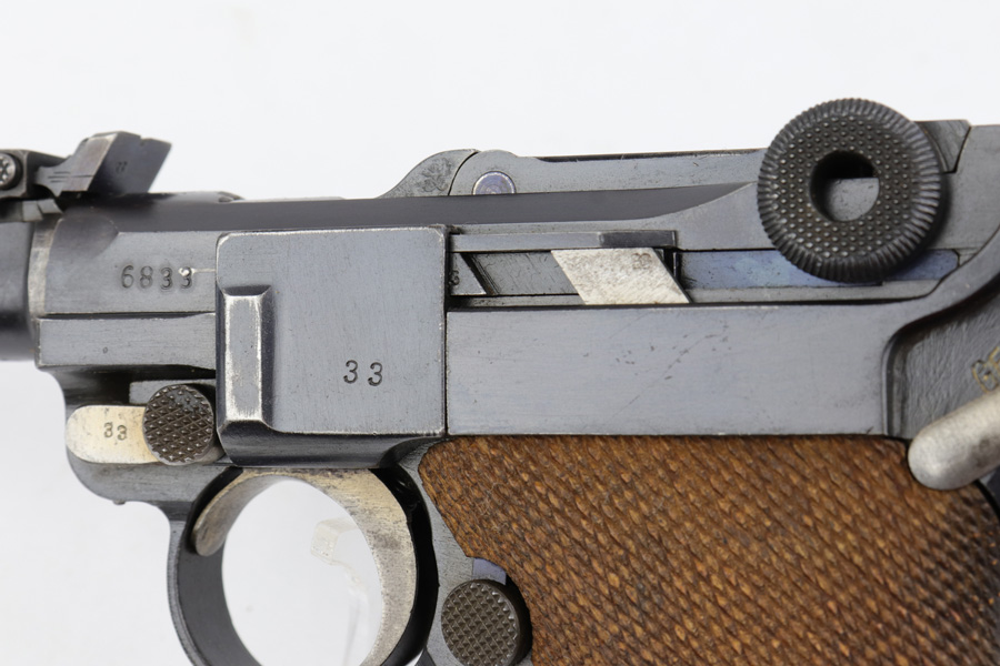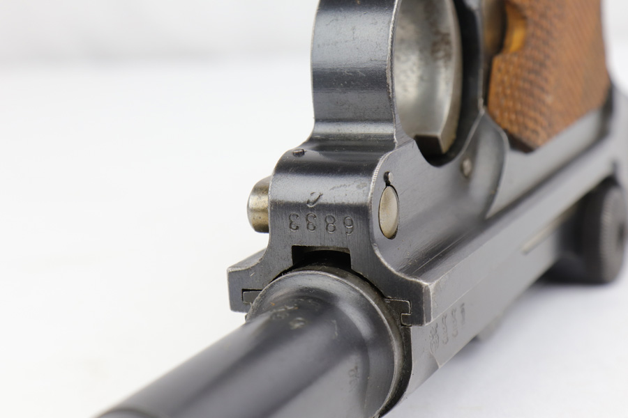 3/25/19 – This is a gorgeous example of a complete DWM Artillery Luger rig, made in 1917, with holster, tool, cleaning rod and stock included. The pistol is all matching and original with 98% blue remaining, showing only minor holster wear on the muzzle, side plate and bottom of the front strap. Matching, original grips and period correct but mismatched magazine. Small parts still show 50-75% straw. Minty bore. The pistol comes with an original but mismatched stock with sharp Crown/G proof. The holster is minty and all original with sharp maker mark and 1917 date on the back. The back is also stamped “GERMANY” as it was sent for export after WW1. Original tool and cleaning rod are present. The leather fittings to the stock, such as the straps and cup, are reproduction additions to complete the rig – they were made and affixed by professional holster worker, Jerry Burney.