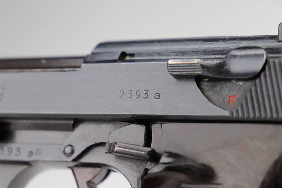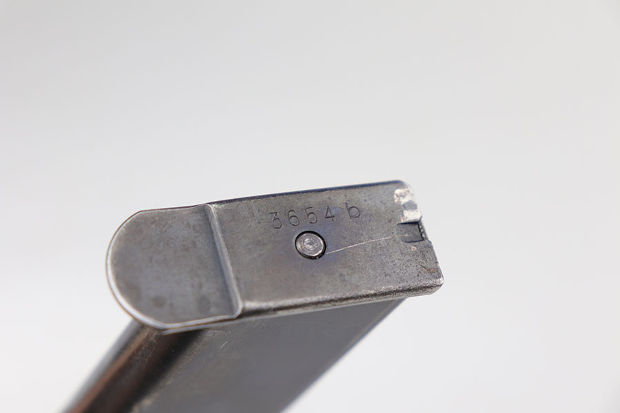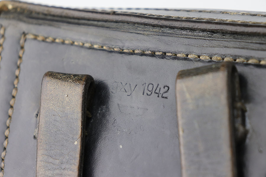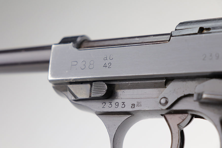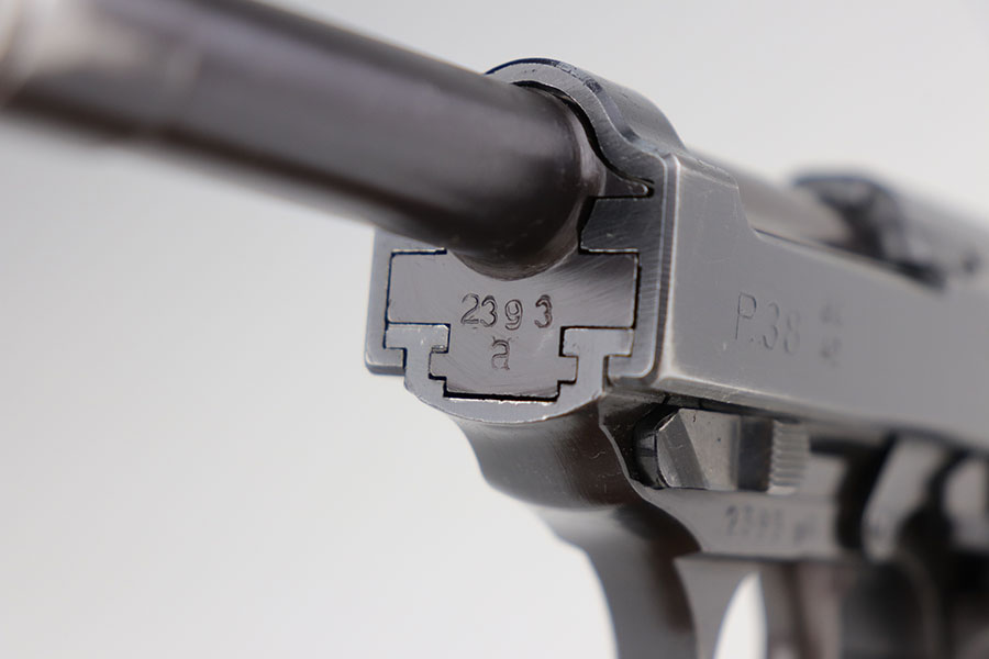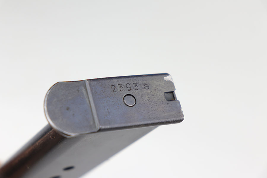 1/20/21 – Made in February of 1942, this is a Walther P.38 rig that was issued to the German Army and still has one of the original, matching magazines. It’s in fantastic condition with a gorgeous profile view. There is only minor muzzle and high point wear, and a bit of finish loss on the firing pin cover. Small parts all have the correct Walther stamps, including the grips. Good mechanics, including safety. Excellent bore. The rig includes a spare magazine that is mismatched to the gun but original and the correct variation with serial number in the ‘b’ block. Rig is completed by an excellent hard shell holster with ‘gxy’ maker mark and 1942 date.