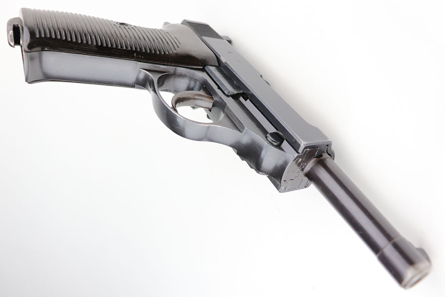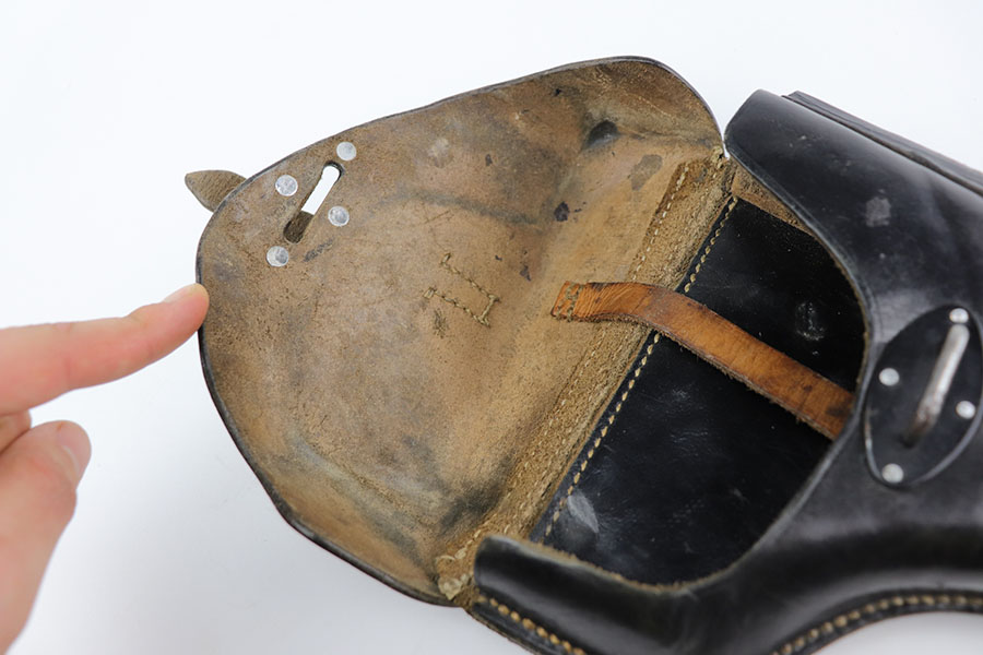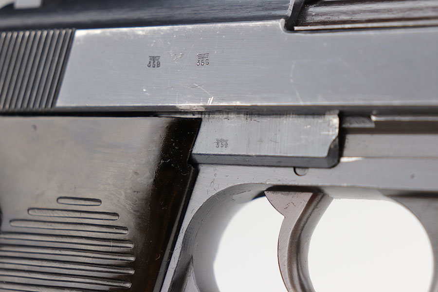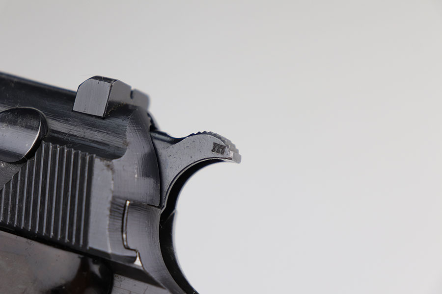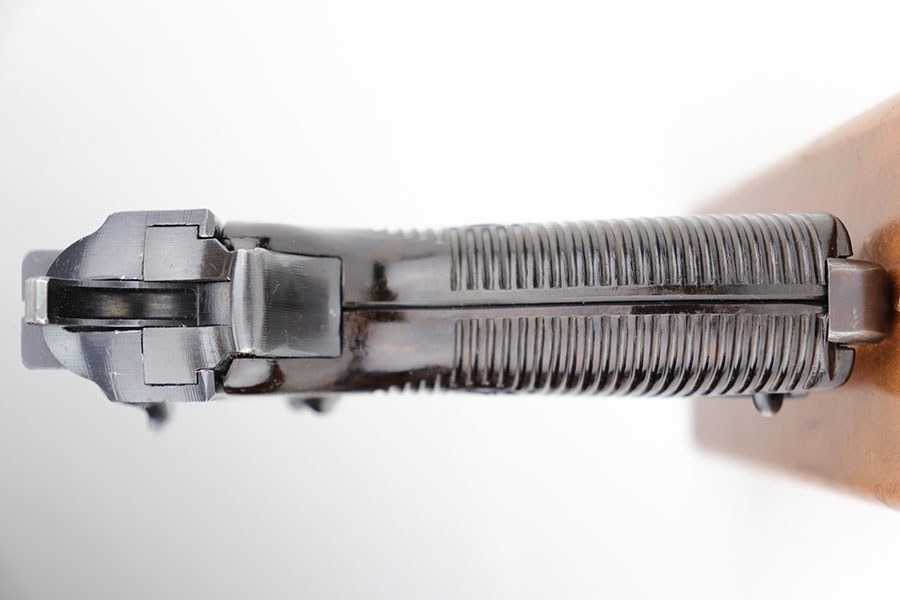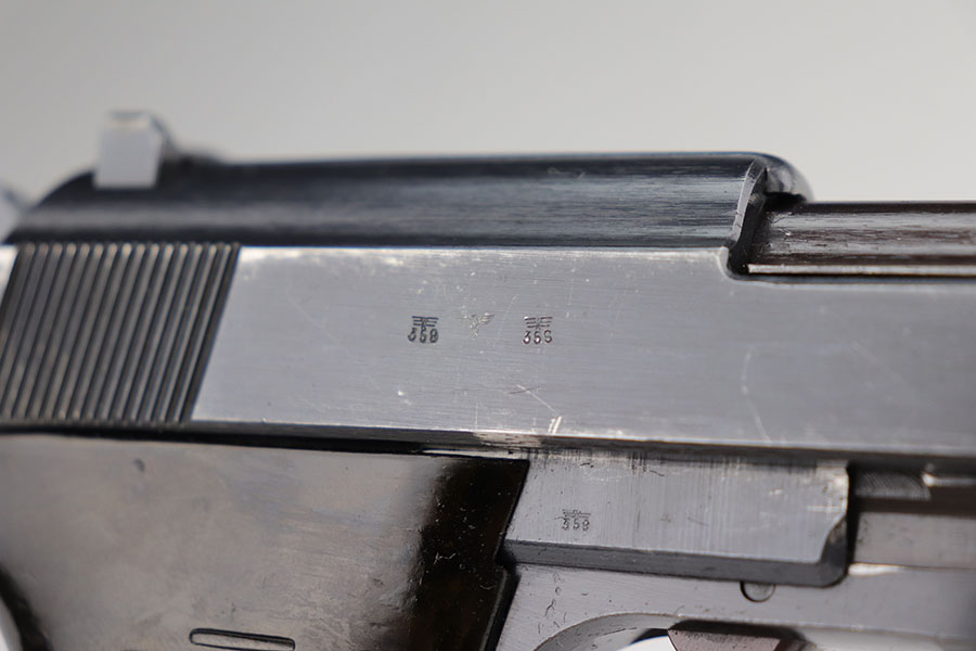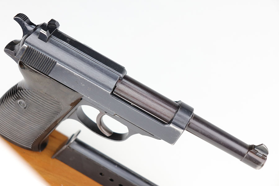 1/20/21 – Made in February of 1942, this is a Walther P.38 rig that was issued to the German Army and still has one of the original, matching magazines. It’s in fantastic condition with a gorgeous profile view. There is only minor muzzle and high point wear, and a bit of finish loss on the firing pin cover. Small parts all have the correct Walther stamps, including the grips. Good mechanics, including safety. Excellent bore. The rig includes a spare magazine that is mismatched to the gun but original and the correct variation with serial number in the ‘b’ block. Rig is completed by an excellent hard shell holster with ‘gxy’ maker mark and 1942 date.
