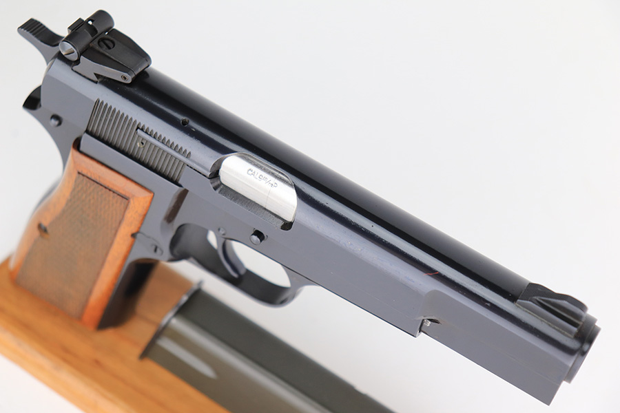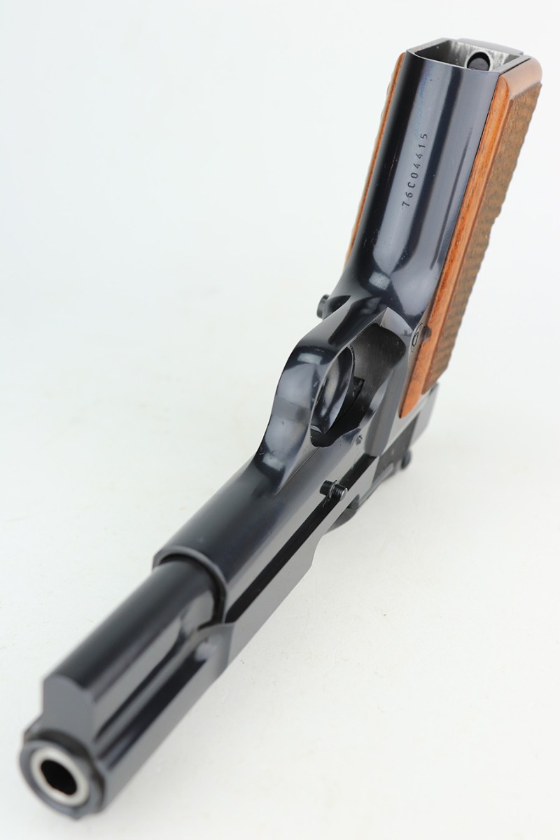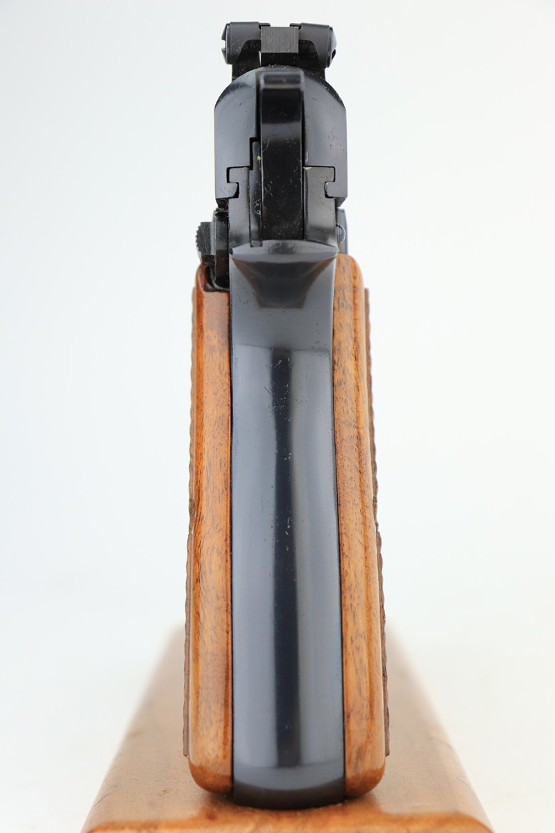 3/1/23 – This is a gorgeous example of a Browning Hi Power, manufactured in 1976 and chambered in 9mm. The gun comes with its original Browning soft case, owners manual, and one magazine. It is in mint condition with essentially no signs of wear except for a couple of extremely faint scratches on the left side of the slide. Fitted with mint wood grips. The bore is like-new.