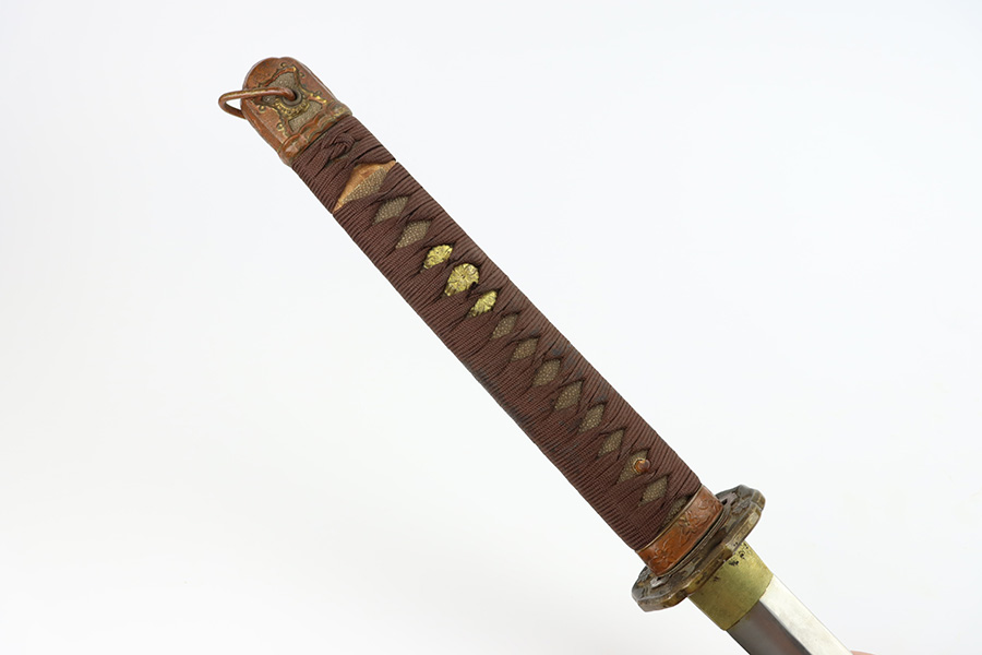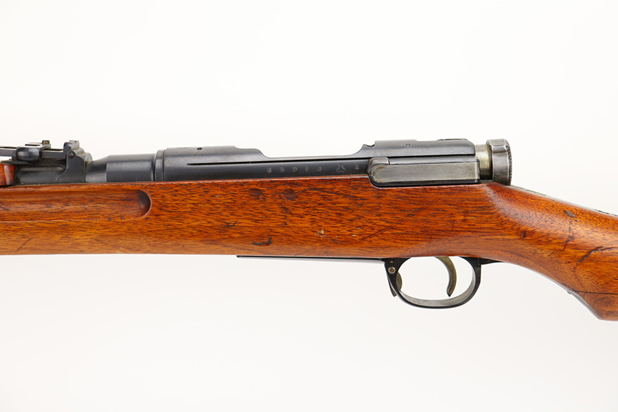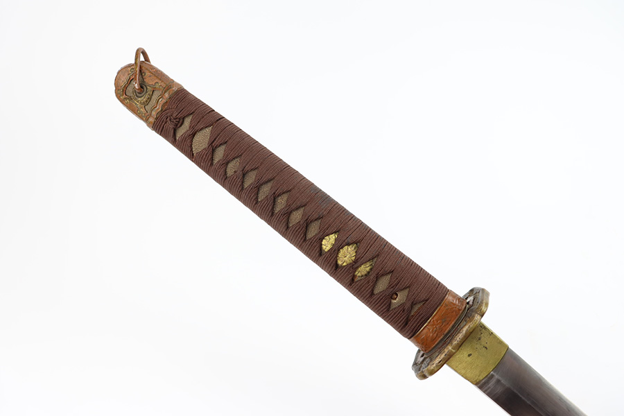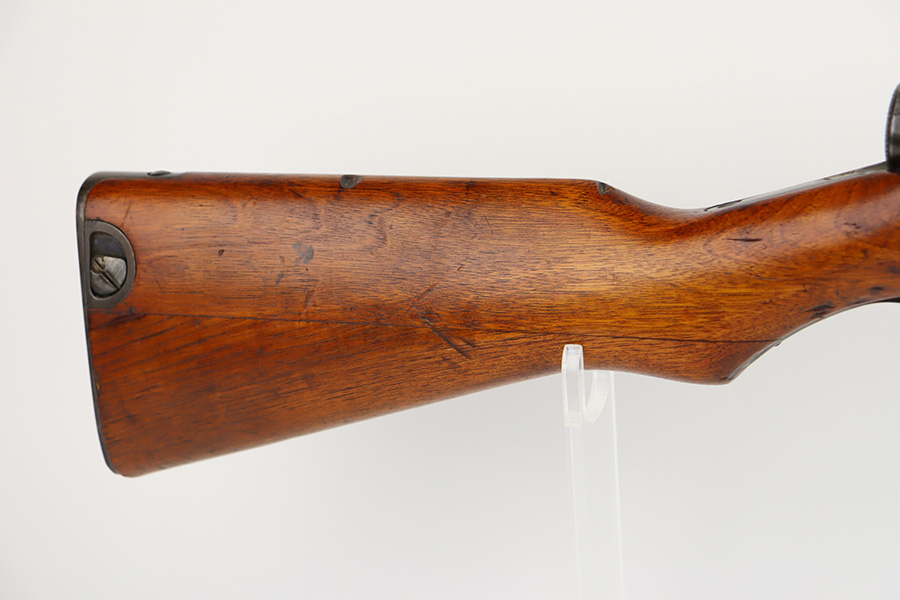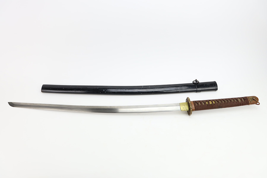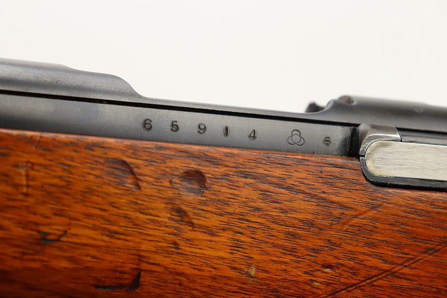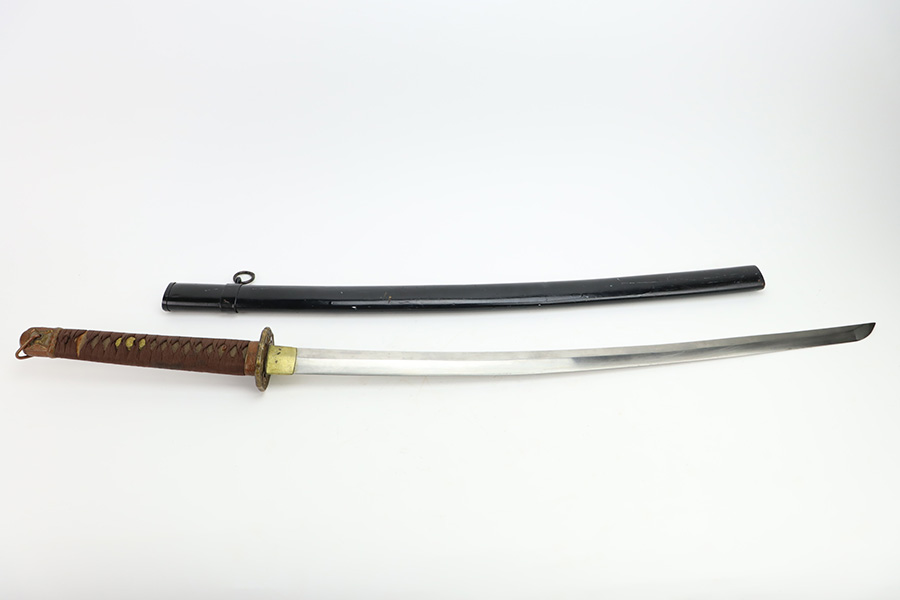 11/30/23 – This is an awesome vet bringback set that comes to us directly from the son of the veteran who captured these pieces. This Arisaka Type 44 Cavalry Carbine and Japanese Officer’s sword were obtained by Pfc. Sylvester Yandoli when he was serving in the South Pacific. His son had us transcribe what he knew of the background for each piece, and an image of that signed letter is shown in the photos of this listing. The rifle is one of the finest Type 44 Carbines we have ever encountered, with full mum intact and virtually zero bluing loss to mention. Minty bore and excellent wood stock with only minor handling wear. All numbers on the rifle match except for the extractor on the bolt. Pfc. Yandoli separately captured a Japanese Officer’s sword with original WW2 fittings. The sword is generally in very good condition with scabbard present, and the blade shows minor handling wear and a few small patches of corrosion.