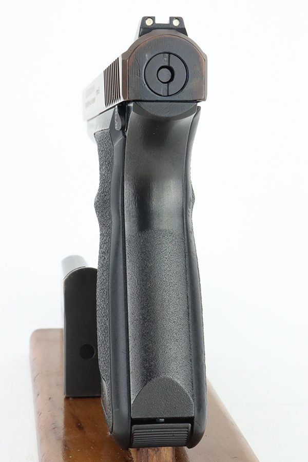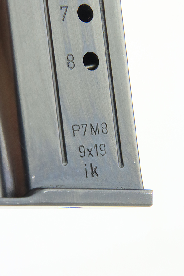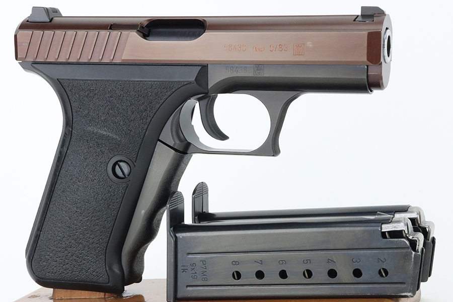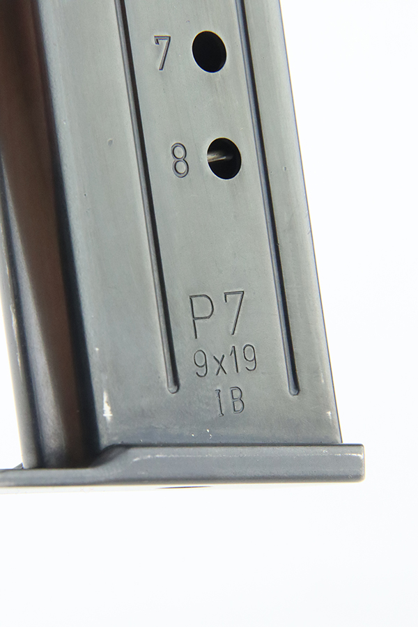 9/3/24 – This is a gorgeous, like-new example of an HK P7 from 1983. It comes with its original matching box, owners manual, and a cleaning brush. The slide has a beautiful plum color to it. No signs of use or wear except for a tiny scratch on the left grip panel. Mint bore. NOTE: The spare magazine is for the P7M8 and won’t fit this gun properly.