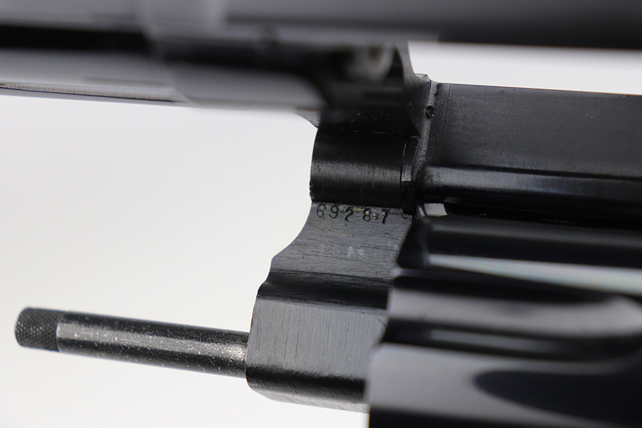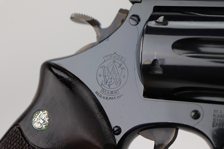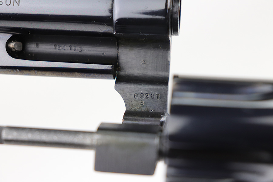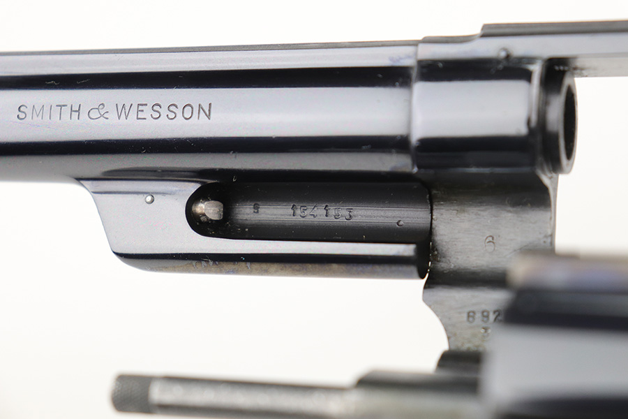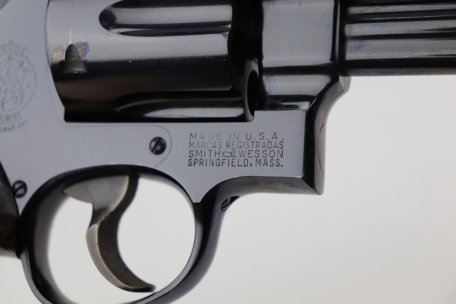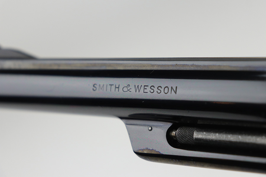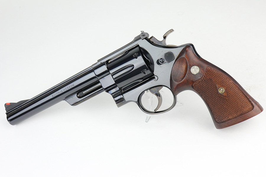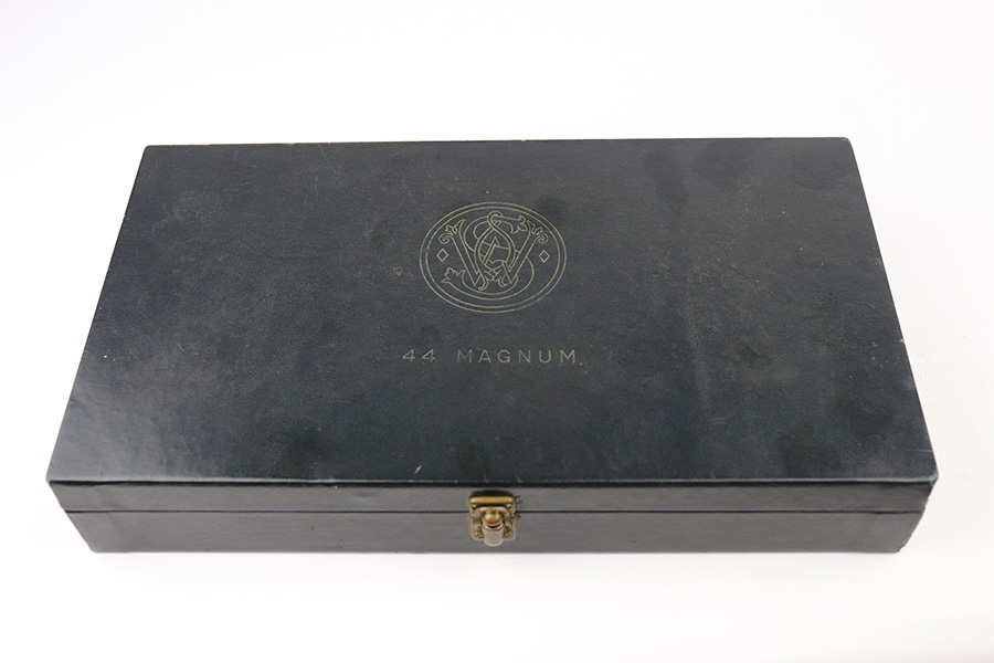 9/1/21 – This is a gorgeous example of a Smith & Wesson Pre-29 Revolver, manufactured in 1956. It is chambered in .44 Magnum and has a 6.5″ barrel. It has a 5 screw frame and comes with excellent coke grips. It comes with an original presentation box, screw driver, and cleaning brush. The cylinder is tight and the action is smooth. The gun is beautiful, retaining about 99% of its original finish. There is just a hint of wear around the muzzle and a very light roll mark on the cylinder. The case-hardening is intact on the small parts. The bore is mint.