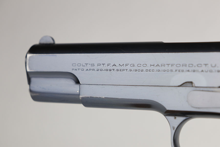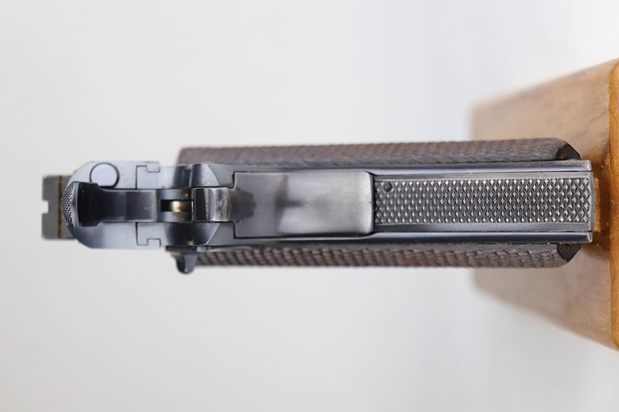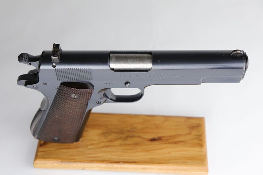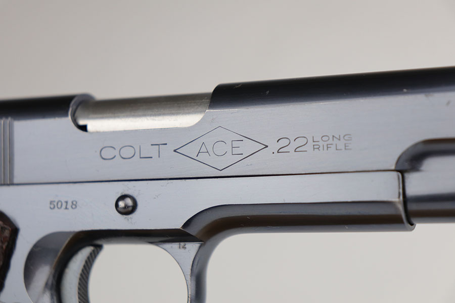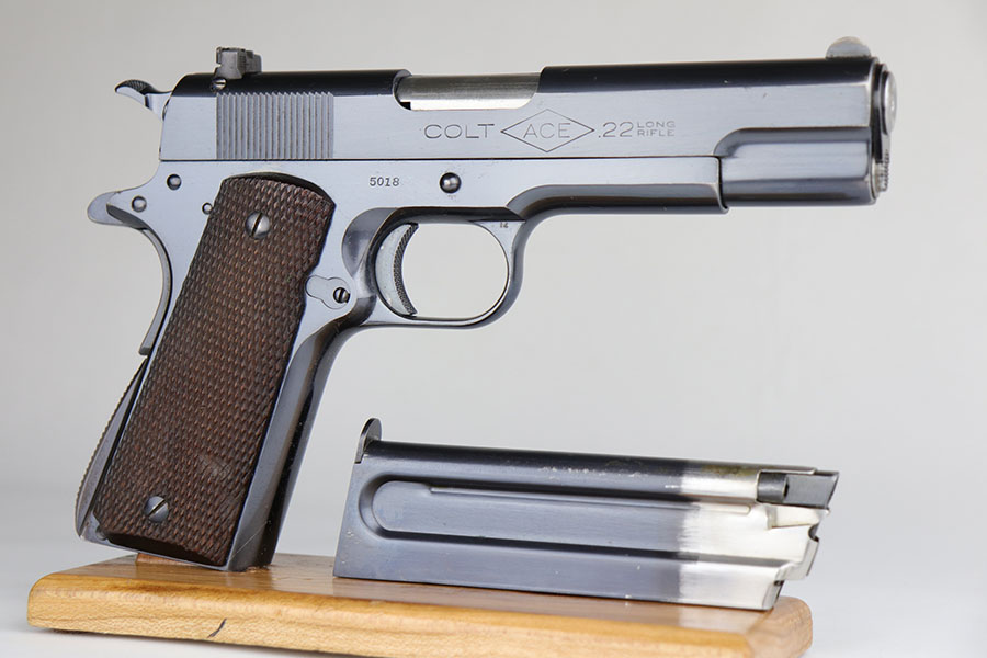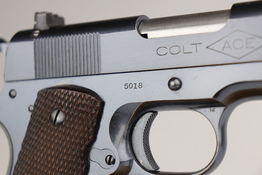 6/25/20 – This is a gorgeous Colt ACE that was manufactured in 1934, only a few years after initial production began. It has about 95% of that beautiful Colt blue remaining, with minor edge wear on hint points, and some finish loss on the front strap. Mint bore and grips. Original two-tone magazine. The Colt Ace or Colt Service Model Ace is a firearm that was designed to allow inexpensive and low-recoil practice while maintaining the feel of a military model 1911.