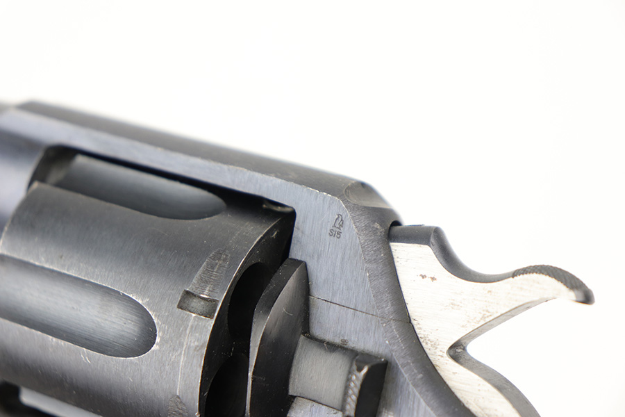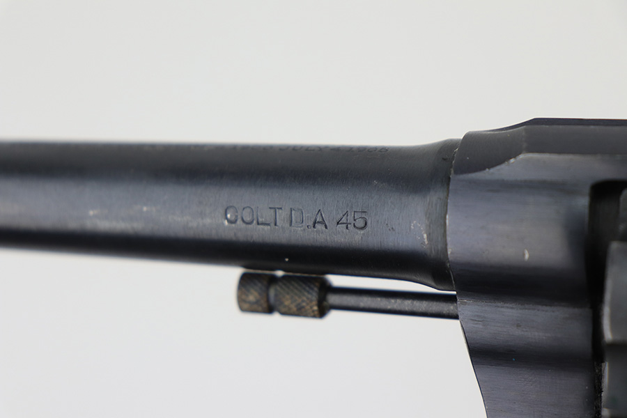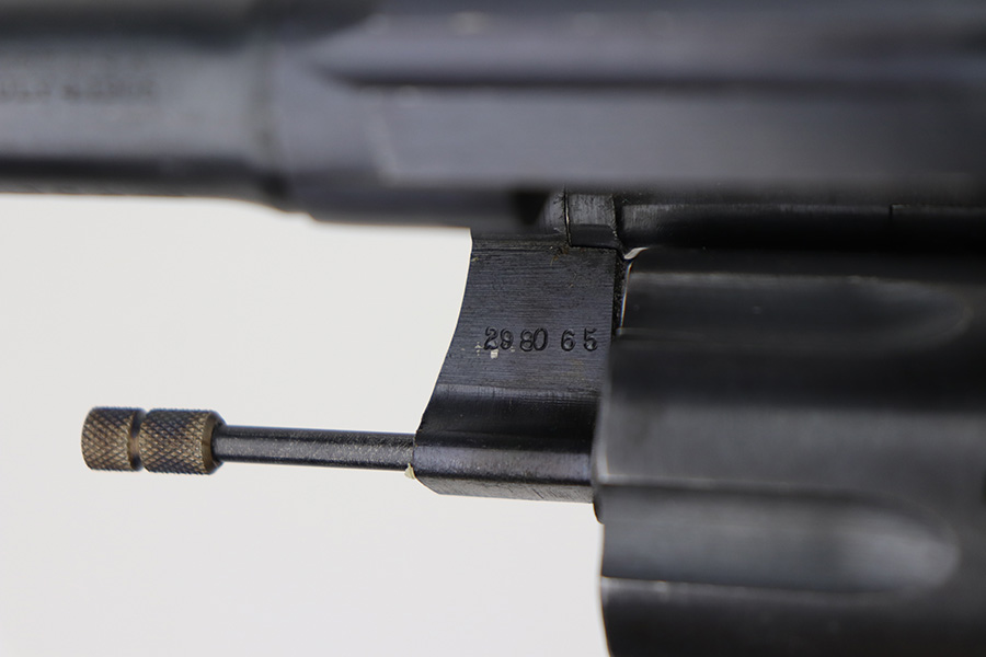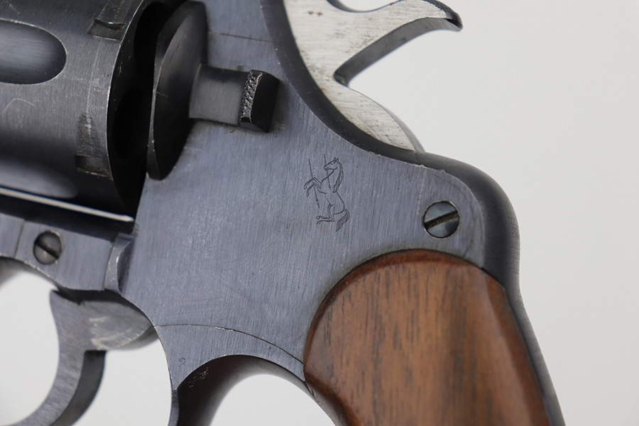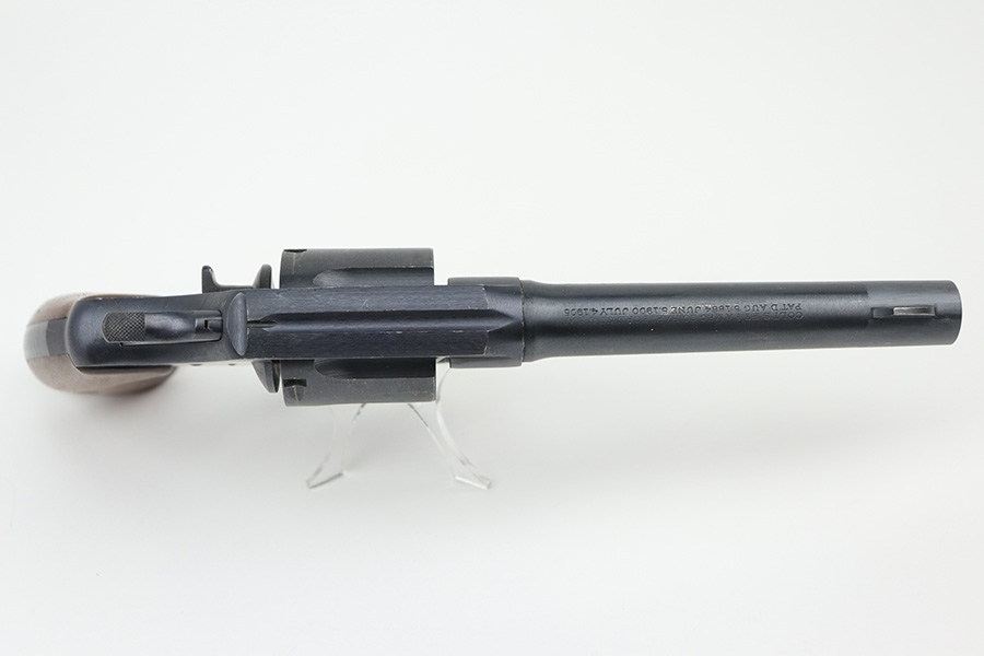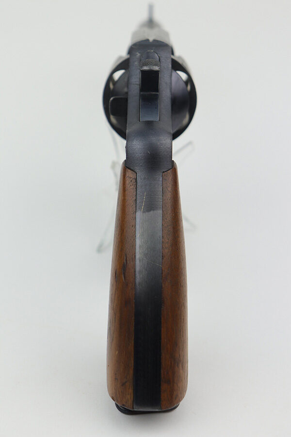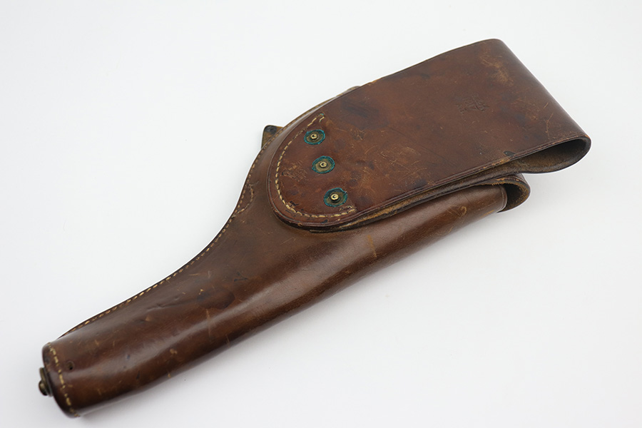 11/24/21 – This is a truly gorgeous example of a Colt Model 1917 revolver issued to the US military during WW1, in 1918. The gun is all matching, is “United States Property” marked, and has the proper “Eagle Head S15” military proof. The rig comes with an excellent 1917-dated leather holster. The gun is stunning, retaining more than 98% of its bluing. There are just hints of wear on the high edges and a very light roll mark on the cylinder. The cylinder is tight and the action is smooth. Lanyard loop on the frame is intact. Comes with excellent wood grips – just a few small bruises. The bore is like factory-new.
