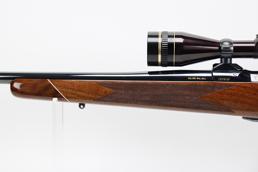 8/17/23 – This is a gorgeous example of a Colt Sauer Sporting Rifle, manufactured in 1976 and chambered in .300 Winchester Magnum. Comes equipped with a fantastic Leupold Vari-X III 3.5x10mm rifle scope (excellent, clear optics). The gun itself has a beautiful high polish finish and is in like-new condition with essentially no signs of wear. Beautiful wood stock. Mint bore. The action is extremely smooth.