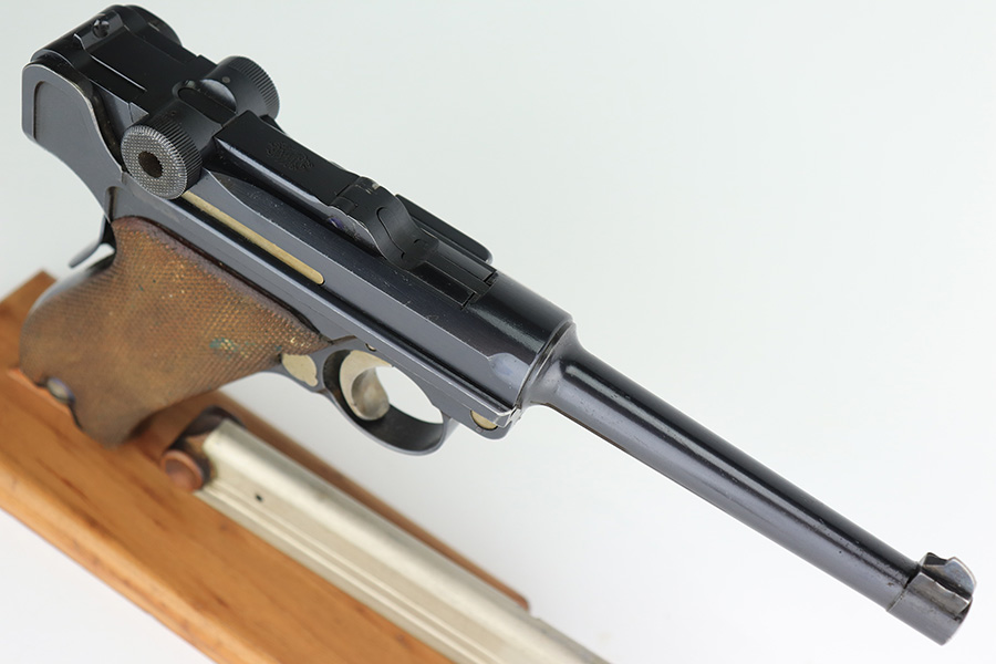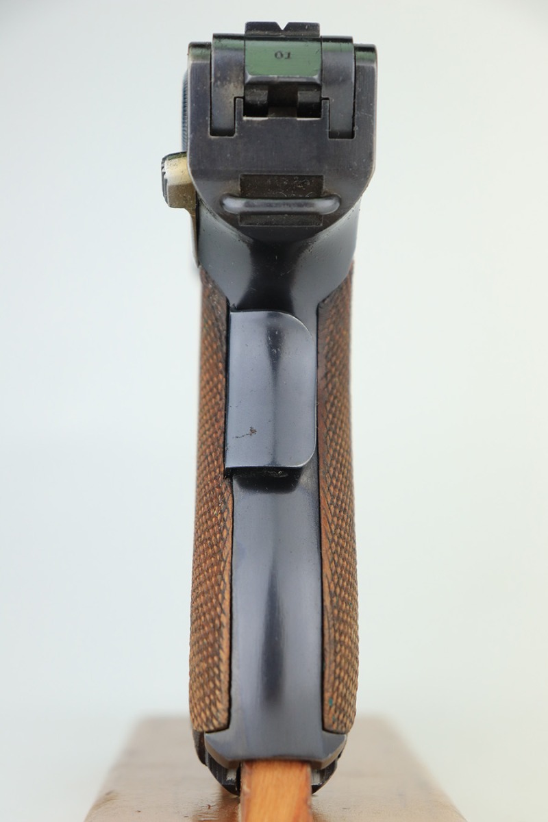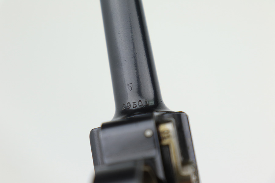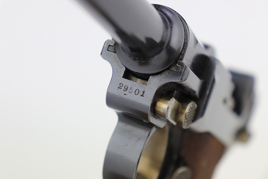 3/10/23 – This is a gorgeous example of a DWM Model 1906 Luger rig sold in the commercial market. All matching and comes as a rig with a nice leather shoulder holster and one proper blank wood bottom magazine. The gun is in mint condition with no obvious signs of wear. Minty wood grips. Very nice bore with strong rifling and some tiny pin-pricking here and there.