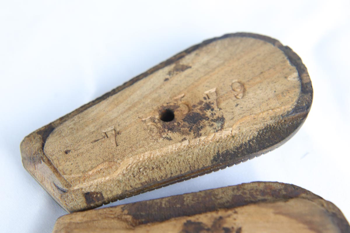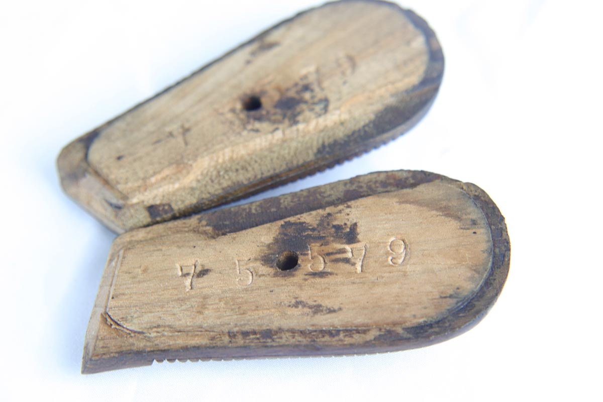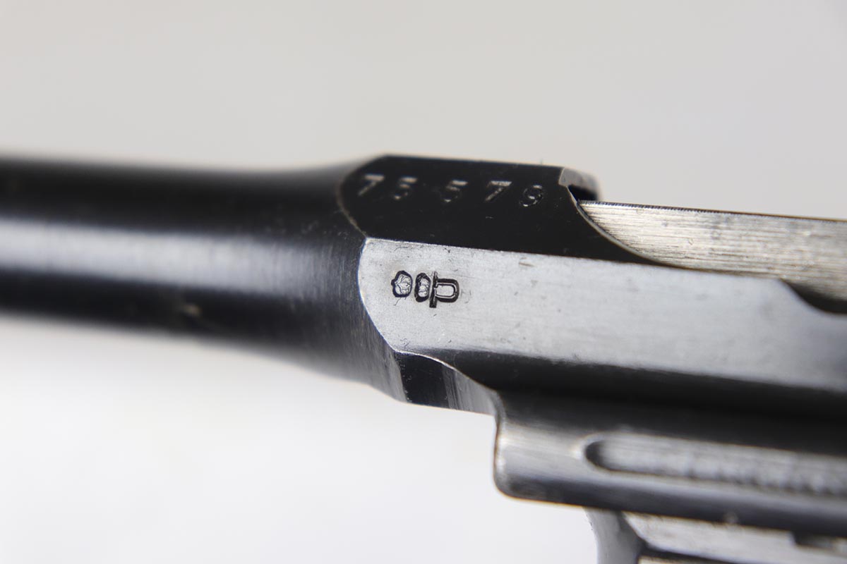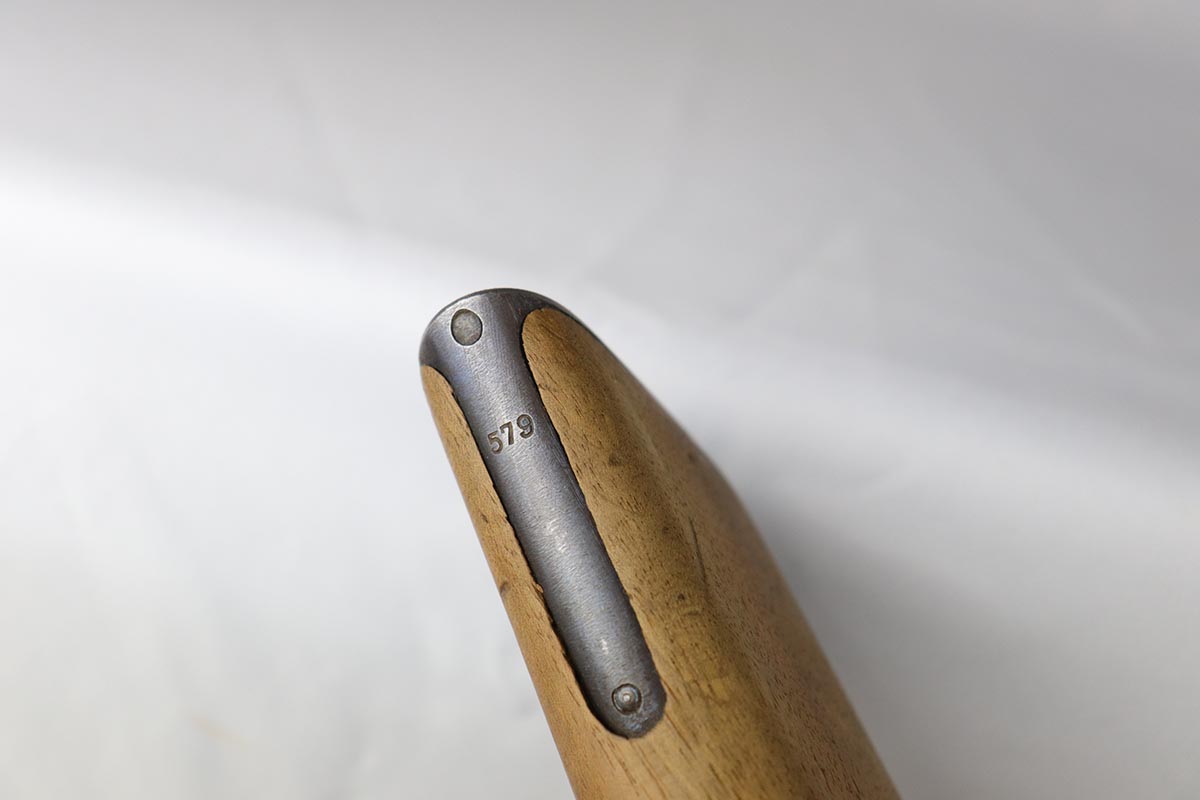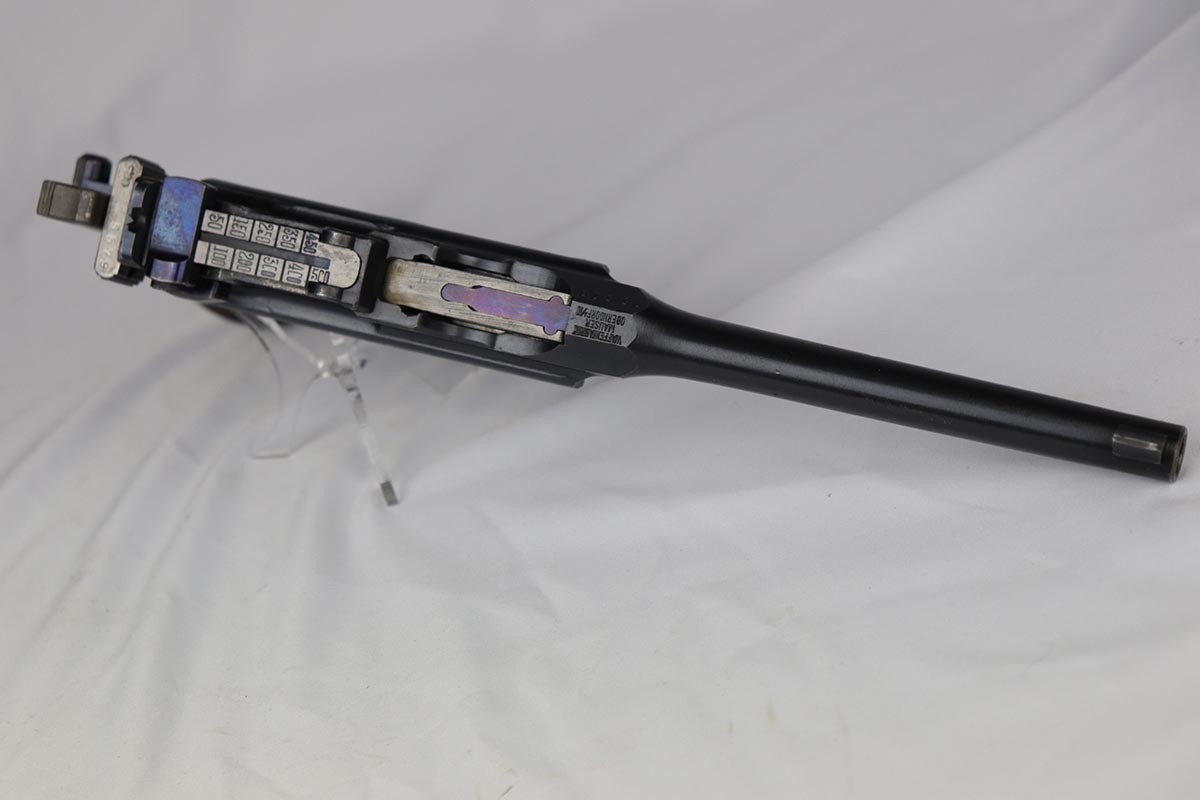 6/4/18 – This is a complete, all matching example of a Mauser “Red 9” broomhandle pistol made during WWI as part of the Imperial German Army contract. Unlike its commercial counterparts, “red 9” broomhandles were chambered in more common 9mm Para caliber, which was used by the german army and were marked with a large 9 on the grips which was then filled with red or orange paint to help German soldiers differentiate its caliber from the standard .30 mauser cartridge. Only about 130,000 of these very collectible guns were made, with only about 100,000 being accepted by the army and issued to the troops. Considered to be a substitute for a light carbine, they became very popular in trench warfare and were used by some of the Germany’s elite crack troops. This gun retains around 96-97% of its original blue, with most of the wear found under the barrel from being inserted in the wood shoulder stock. There is no pitting anywhere and the blue is deep and even without any browning or patination. There are a couple of small nicks midway on the left side of the barrel. Grips and bore are in excellent condition. All the numbers match, including the grips and all the internals. Vivid fire blue is present on the rear sight cursor, bolt stop and on the trigger and safety lever. This is a complete rig with its original minty matching shoulder stock with no defects or cracks and an imperial proofmark stamped in the wood below the hinge. An imperial acceptance mark is also present on the right side of the barrel extension. Beautiful original leather harness, maker marked and dated 1918, competes this incredible set.