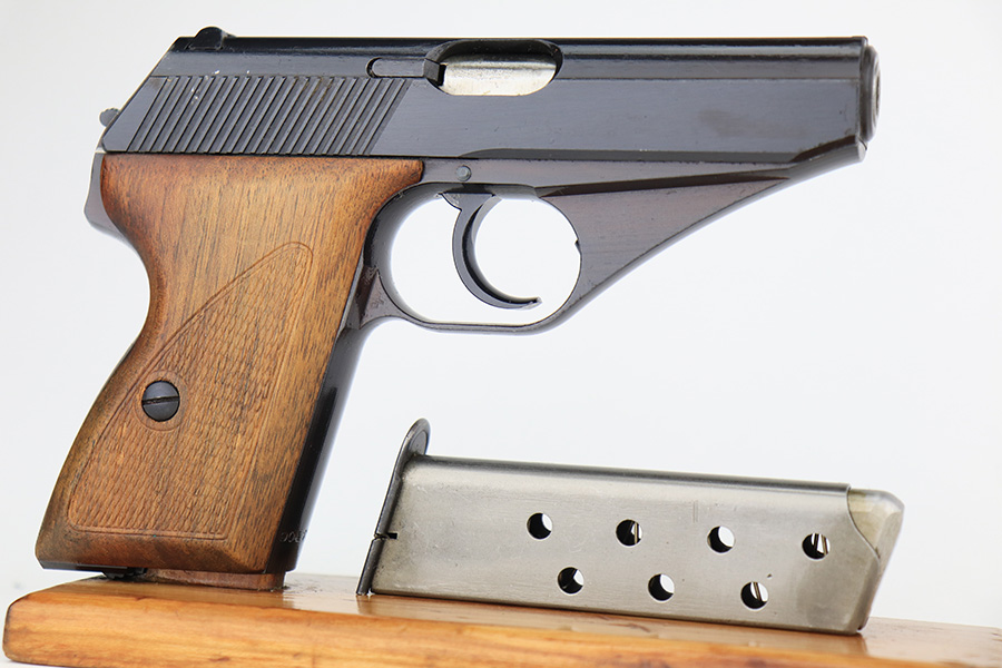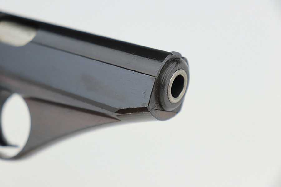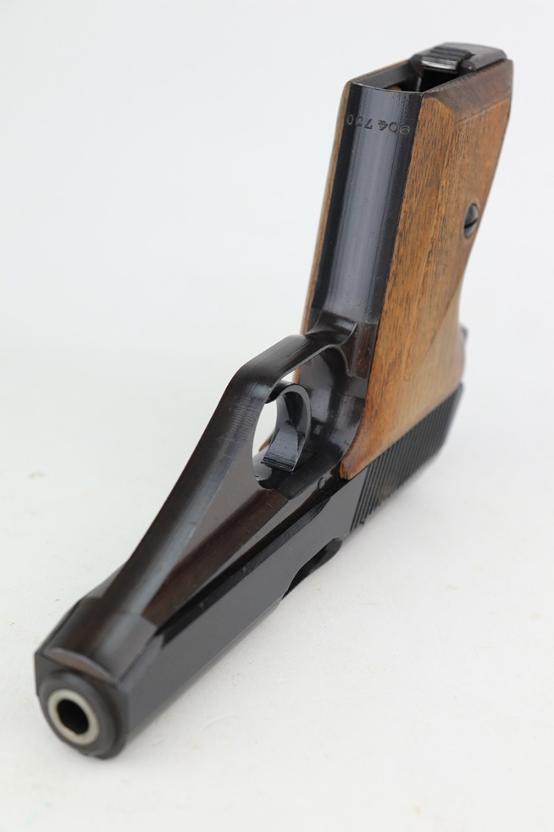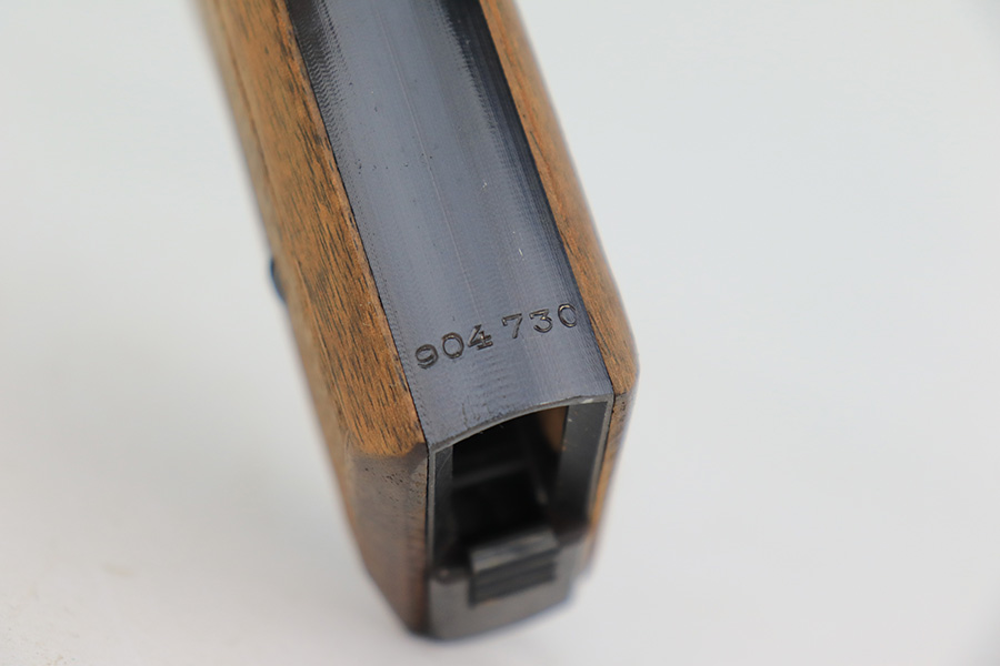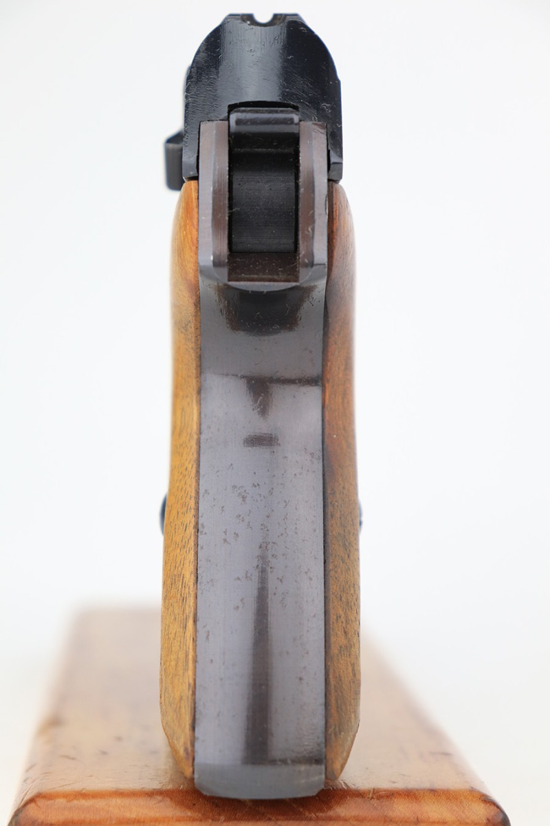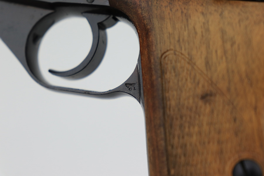 1/18/23 – This is a gorgeous example of a Mauser HSC that was issued to the Nazi Police Force in 1944. It is all matching and has the proper Nazi police “Eagle L” proof on the left side of the trigger guard. It is in like-new condition with essentially no wear. Fitted with a set of excellent period-correct wood grips and comes with one proper half-moon magazine. Factory-new bore.