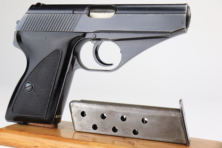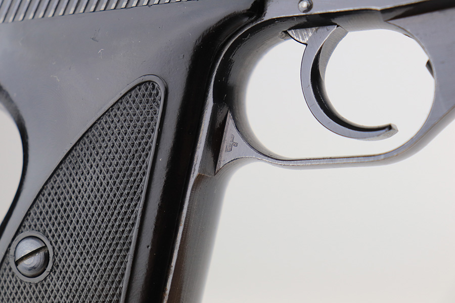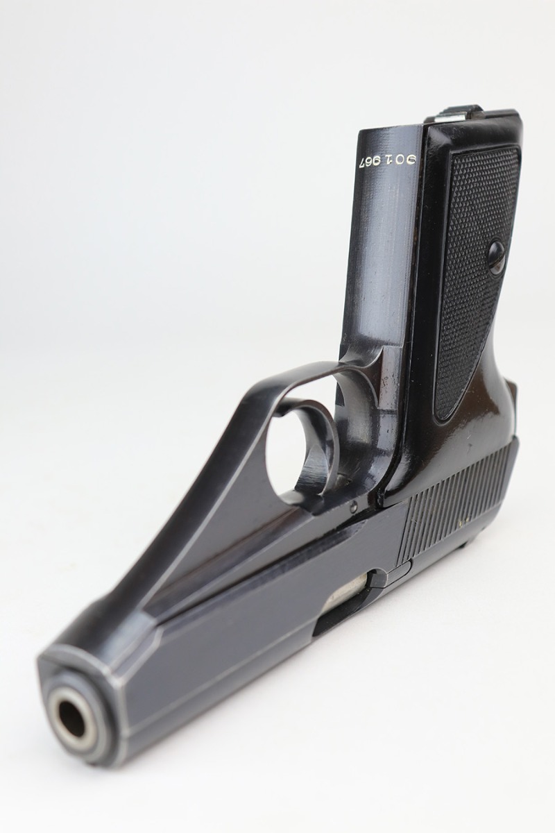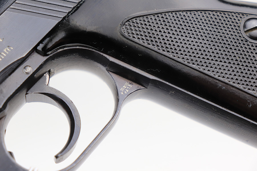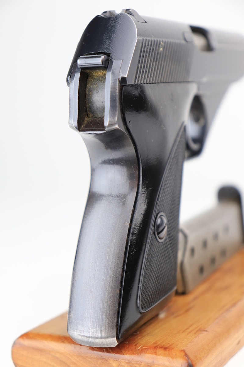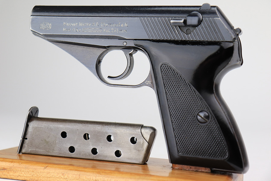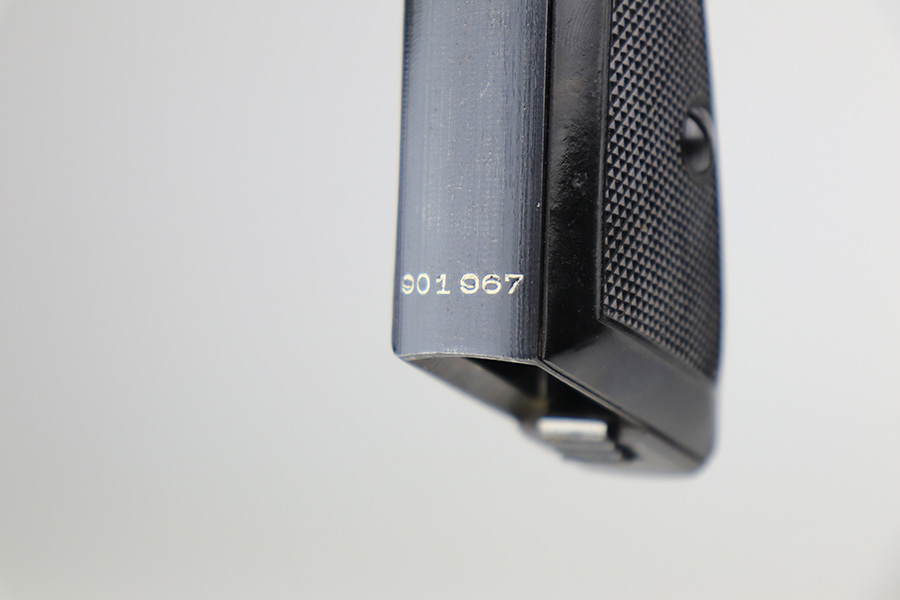 3/11/22 – This is a gorgeous example of a Mauser HSC issued to the Nazi military in 1944. The gun is all matching and has the proper “Waffen 135” Nazi military acceptance proof on the left side of the trigger guard. It has retained more than 98% of its original bluing. There is just a hint of wear around the muzzle and hints of thinning on both grip straps. It comes with an excellent set of scarce late-war black bakelite grips and one proper magazine. The bore is stone-mint.