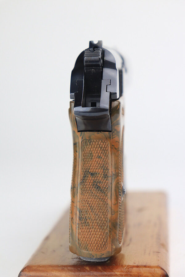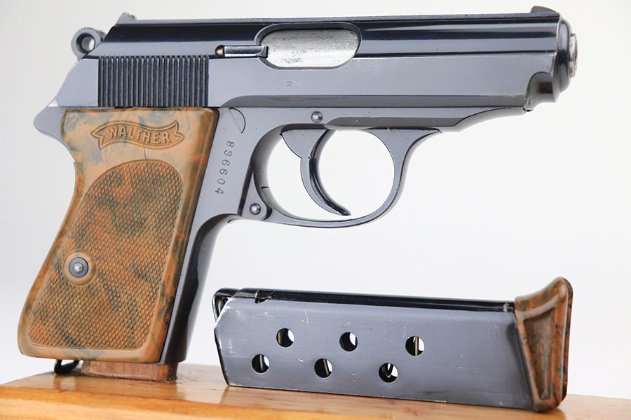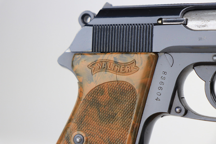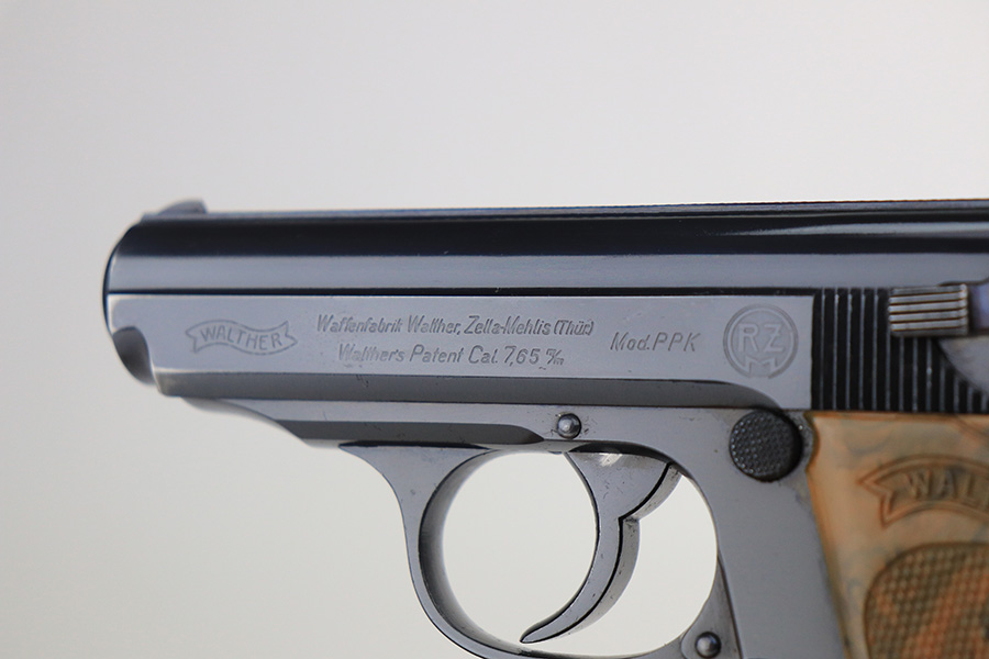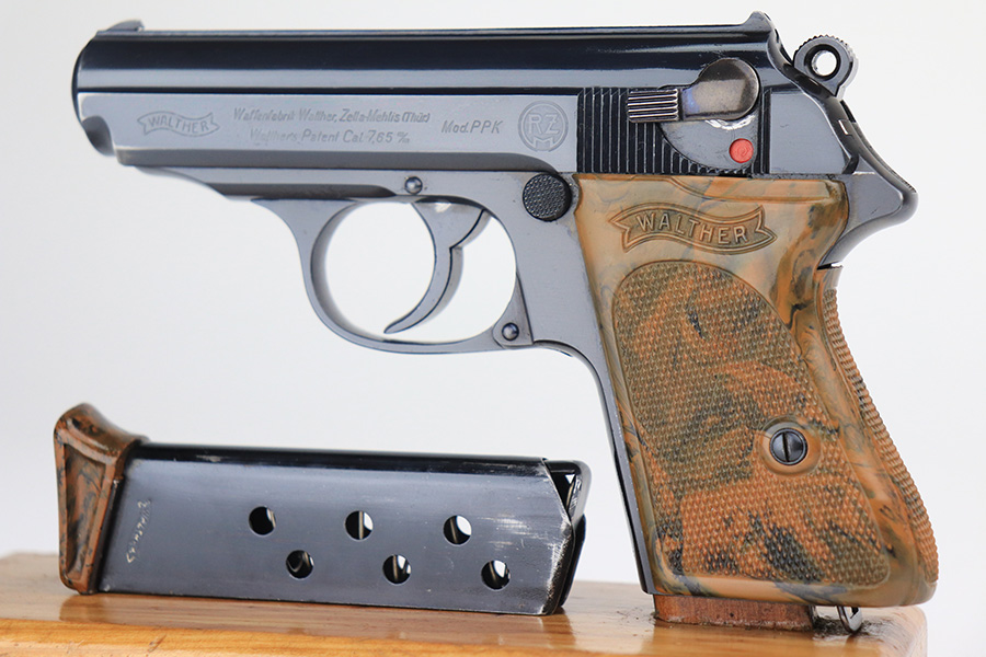 12/15/21 – This is a gorgeous example of an RZM-marked Walther PPK manufactured in 1935. This one comes from Tom Whiteman’s personal collection. It also comes with a signed COA certifying the gun’s authenticity and that it is from Tom’s collection. The RZM (Reichs Zeug Meisterei) was the equipment office of the NSDAP and was established to contract for equipment. These pistols were commonly thought to be issued to the German political leaders of the time. This gun is all matching, has the proper “RZM” marking on the left side of the slide, and has retained about 99% of its original bluing. There are just hints of wear on some of the high edges and around the muzzle. It comes with an excellent brown grip (hairline crack on the right side) and a period-correct Walther banner-only brown finger extension magazine. Mint bore. This is about as good as it gets.