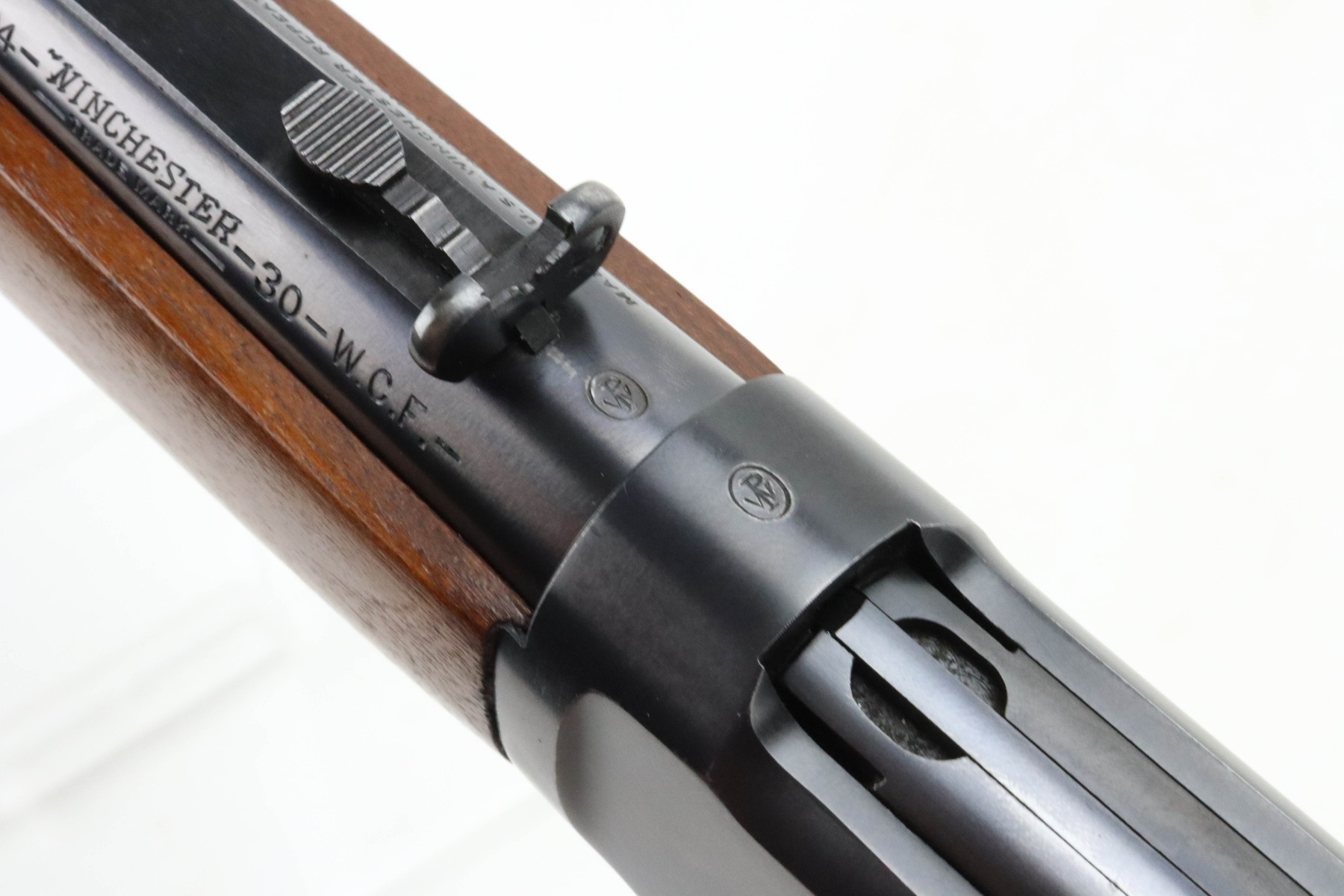 9/17/2024 – For sale is a gorgeous Winchester model 94 chambered in .30 Winchester Centerfire in 1941. The rifle looks nearly brand new with excellent bluing on the metal. There are some minor edge wear on the receiver with a larger spot of wear near the hammer on the right and left sides. There is also a spot of oxidation on the left side of the receiver. The bore is very bright with great rifling. The stock and handguard are also in equally excellent condition.