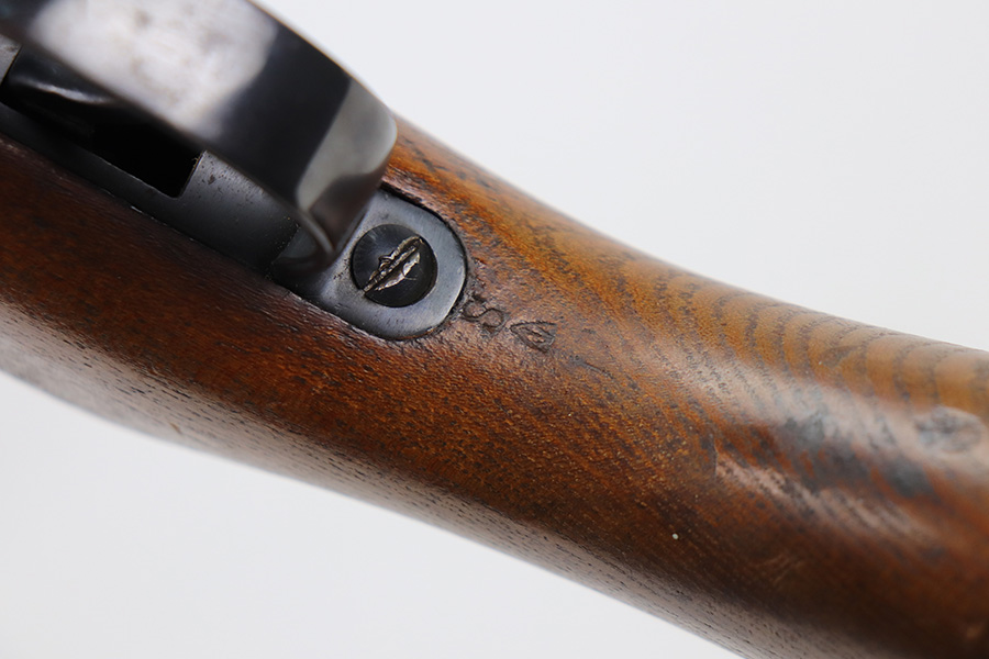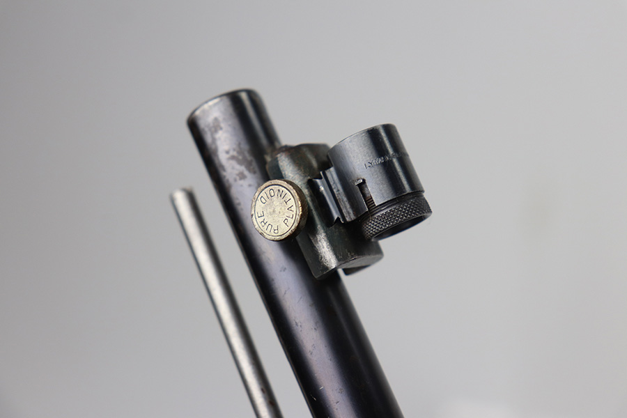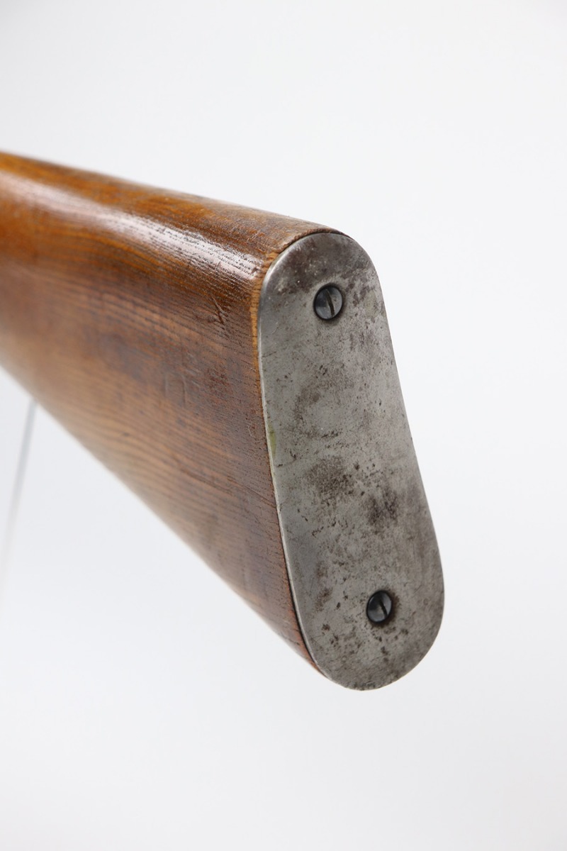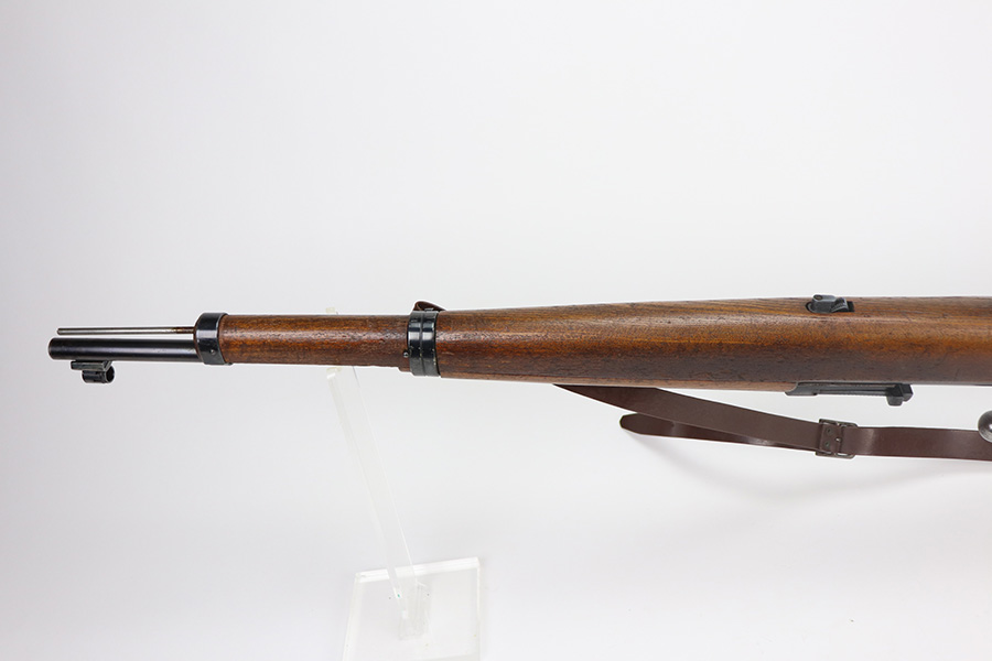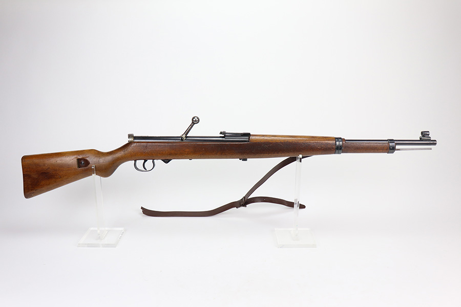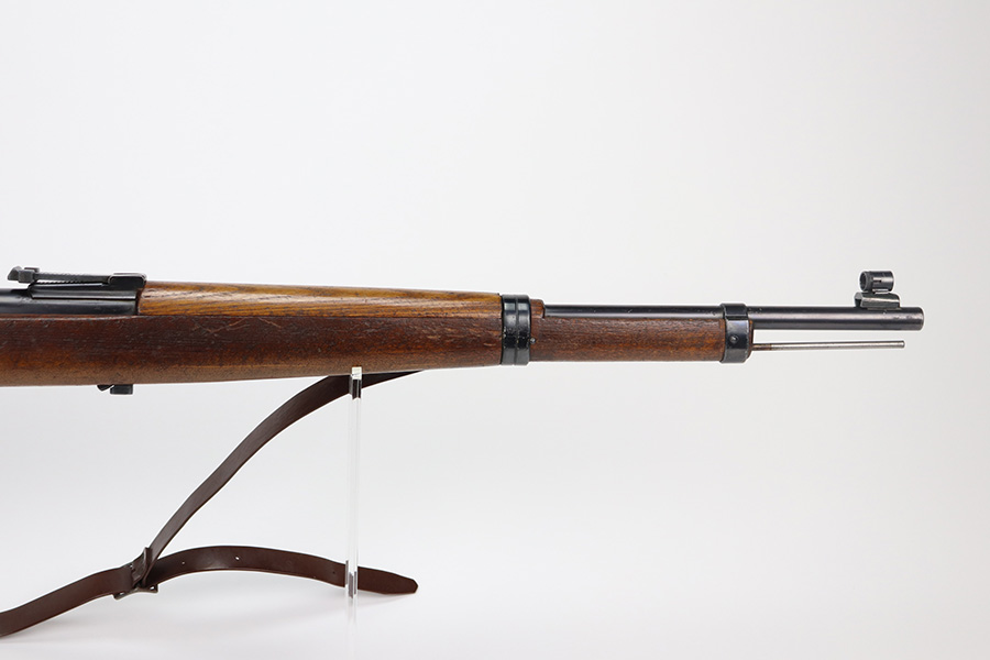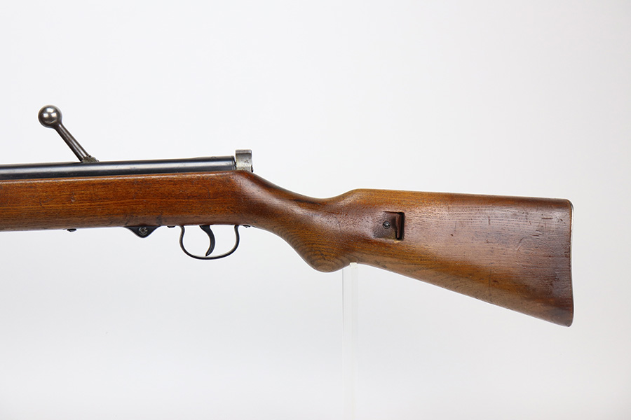 5/11/21 – This is an excellent example of a pre-WW2 Sport Model 33 BB Gun made by Haenel. It comes with a rare Vinyl sling. The gun is fully operational. It comes with an adjustable front sight hood. It has retained most of its bluing. There are just some light dings and handling marks down the length of the barrel and spotty freckling around the receiver. The stock is excellent except for some minor dings on the right side. The vinyl sling is cracked on one of the sides.