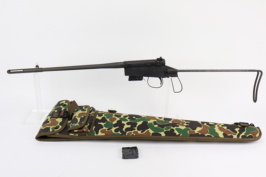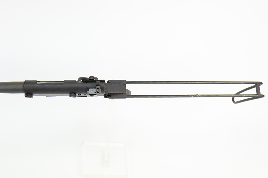 4/22/22 – This is a scarce Harrington & Richardson M4 Survival rifle that was produced for the U.S. Air Force and chambered in .22 Hornet. These weapons were issued to various air crews, but was not used for defense; the weapon was instead used as a survival tool for these crews to forage wild game for food and other resources. Fewer than 30,000 were produced, with production running from 1949 into the early 1960’s. This one is in great shape with minor thinning of the finish on either side of the receiver and an excellent bore. Two total magazines are included, with one being unmarked and the other marked ‘Mod. 23-D Savage .22 Hornet’ on the base (correct mag). The telescoping stock is retractable and the barrel is detachable. Comes with a well-fitted carry case. C&R eligible.