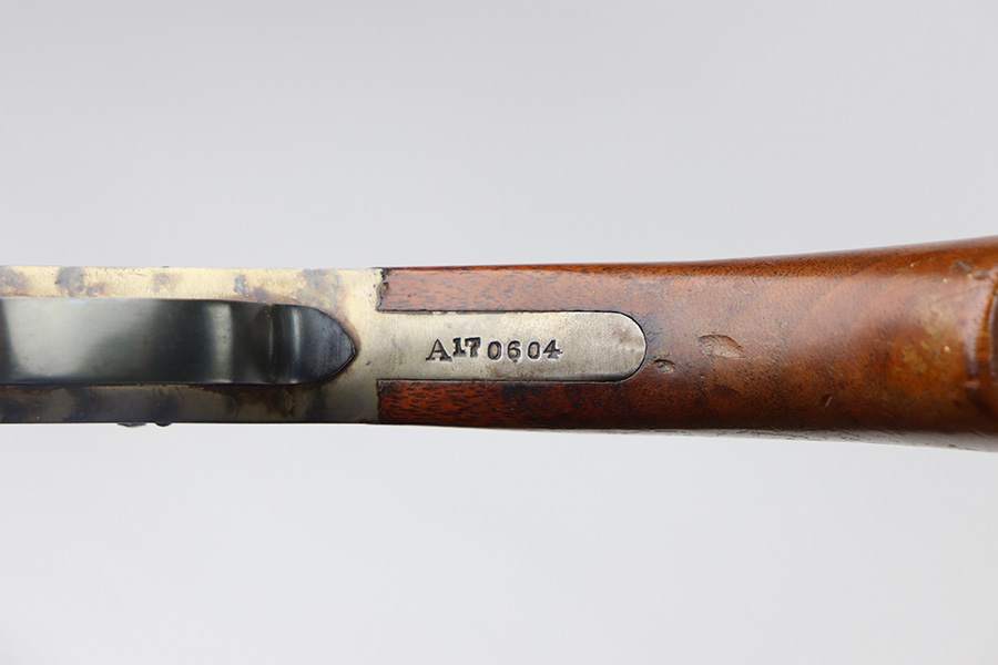 5/11/21 – This is an excellent example of an H&R Model 1915 single shot shotgun, chambered in .410. The gun is in excellent condition retaining almost all of its original finish. There are just some dots of oxidation on the barrel and a some handling marks near the muzzle. Spotty oxidation on the receiver. The original case-hardening on the receiver is intact. Excellent stock with minor handling marks and surface scratches here and there. Excellent shiny bore.