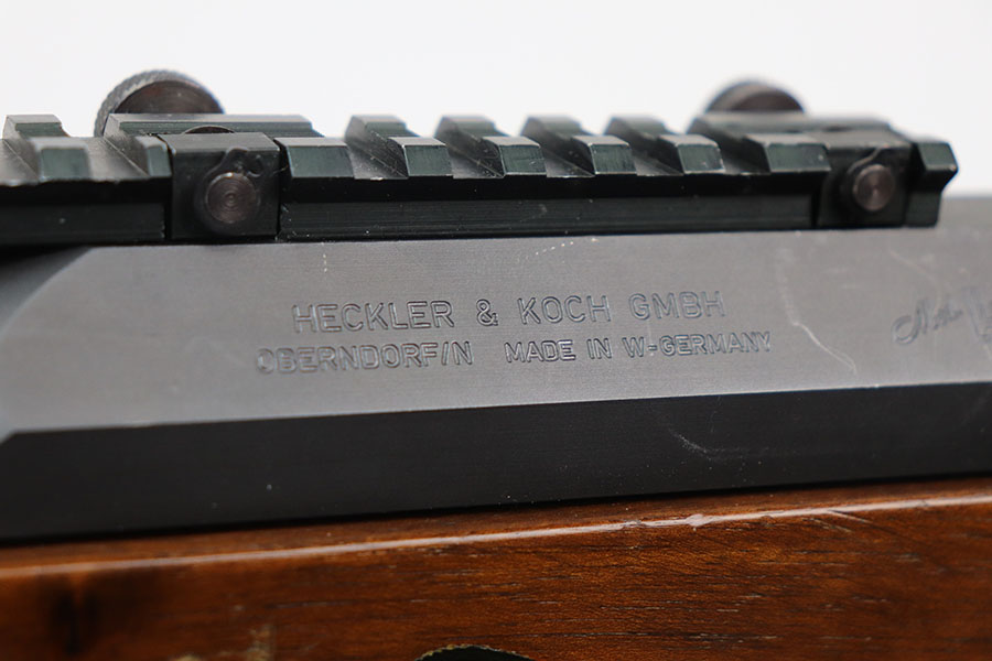 2/12/21 – This is an excellent example of an H&K Model SL7 semi auto rifle, chambered in 7.62 NATO. The Heckler & Koch SL7 is a roller-delayed blowback operated sporting carbine made by Heckler & Koch. It was chambered in 7.62×51mm NATO caliber and designed and marketed throughout the world as a hunting/utility rifle. Unlike the roller-delayed blowback military Heckler & Koch rifles the cocking handle is situated far more rearward and on the right side and features a camming system to help overcome the initial friction exerted by the “bolt head locking lever” anti-bounce mechanism that prevents the bolt from bouncing off the barrel’s breech surface. The SL7 is no longer manufactured, having been replaced by the Heckler & Koch SLB 2000. This particular gun is excellent, retaining virtually all of its finish. The stock is very nice – some wear on the upper hand guard and a few scratches on the butt stock. Comes with a leather sling. The bore is near-mint.