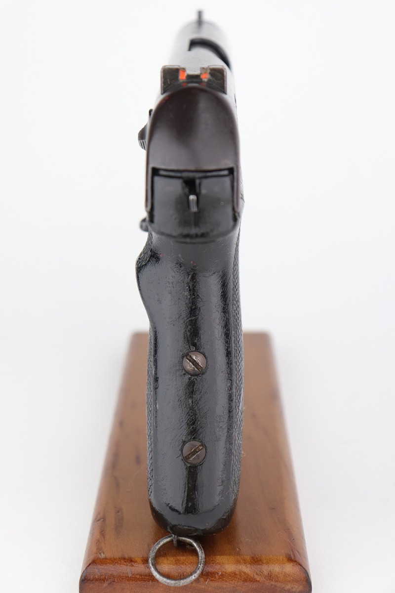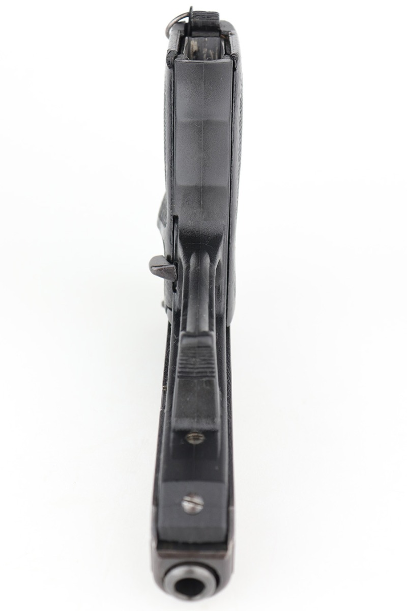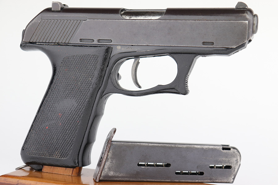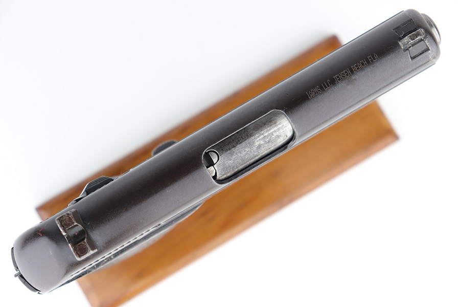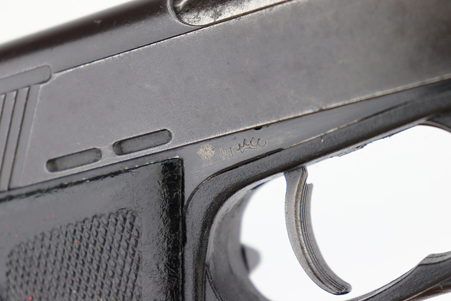 1/16/23 – This is a nice example of an H&K P9S manufactured in 1978 and chambered in 9mm. It is all matching, has the proper West German proofs, but there is an import mark on the top of the slide. There is very little actual finish loss, but there is spotty oxidation along both sides of the slide and on the barrel. Comes with a proper black bakelite grip – tiny chip in the bottom left corner. It also comes with two magazines – one is sealed in a bag. The bore is excellent and shiny.