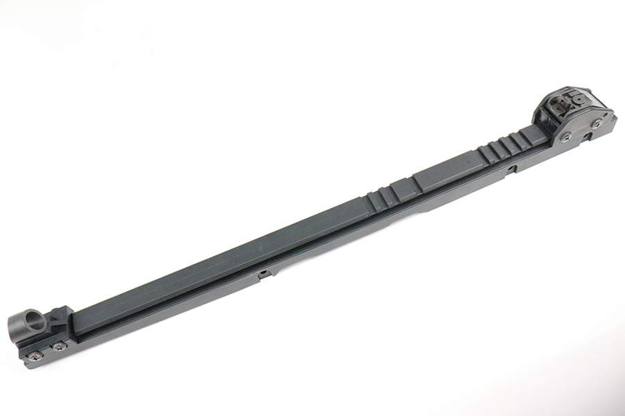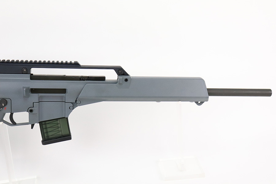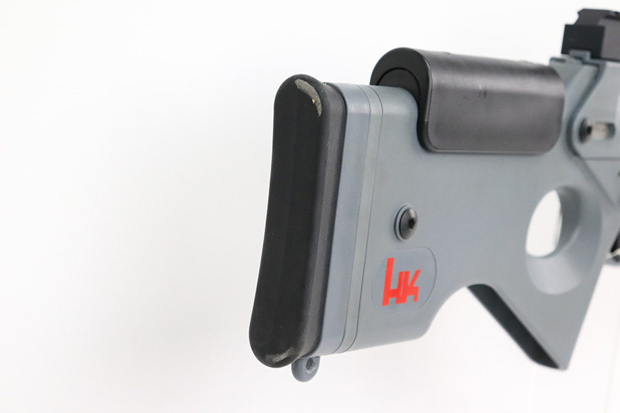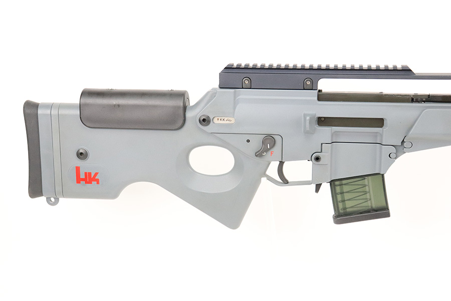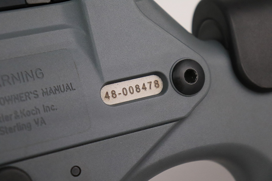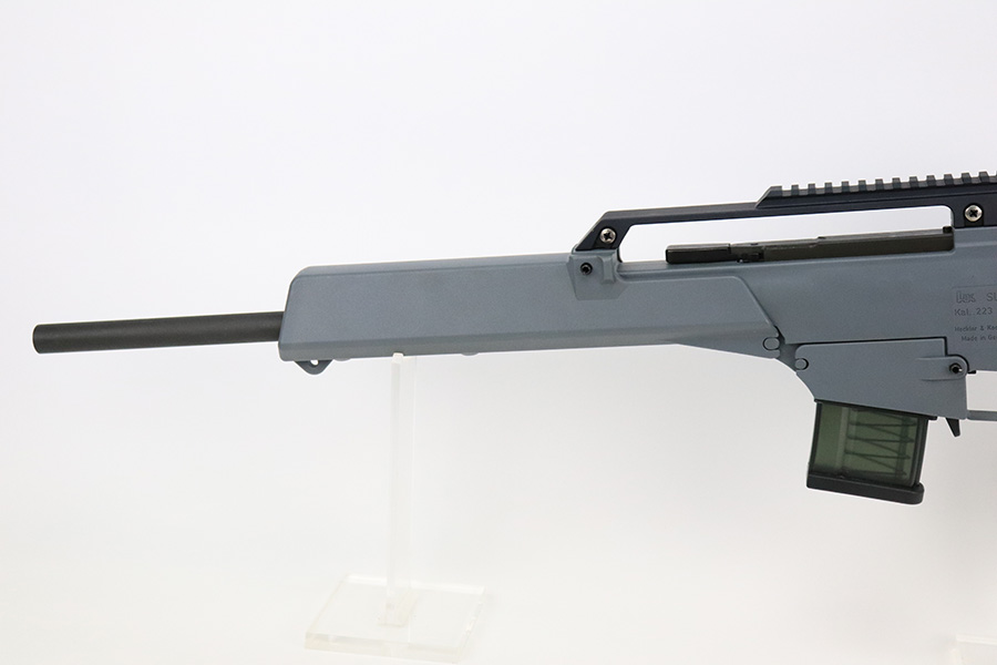 7/27/22 – This is an original Heckler & Koch SL8-1 from 1999 in excellent condition. It has just minor surface scuffs on the receiver and barrel, and an excellent bore with only minor signs of use. The SL8-1 is the grey US-import version of the rifle. It has a single-stack magazine and its sighting system consists of a long rail with iron sights. The bolt is slightly modified to accommodate the single-stack magazine. The forearm is not vented.[ It features a short stroke piston actuated gas operating system, and is an advanced gray carbon fiber polymer construction based on the German Army G36 rifle. It has a thumbhole stock with adjustable cheekpiece and buttstock. Comes with a total of three original 10rd magazines. It has a modular and removable Picatinny rail, as well as a spare rail with removable iron sights. It has a 20.8in cold hammer forged heavy barrel. Also comes with manual.