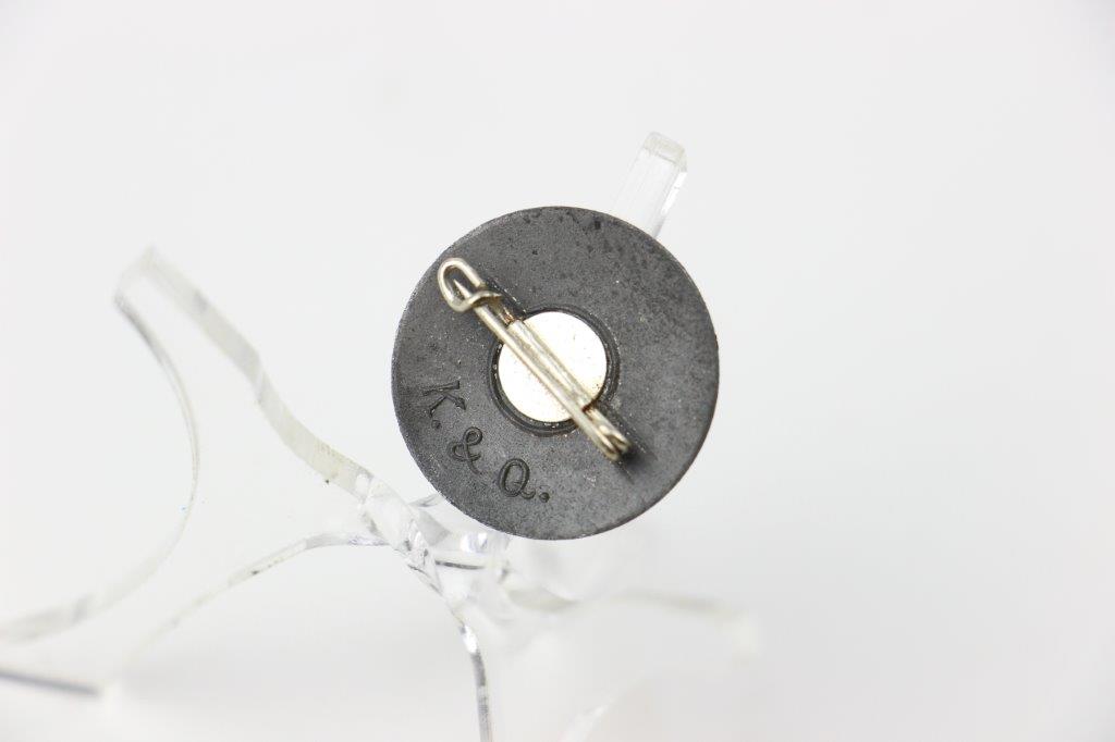 10/9/24 – This is an original WW2 Heim Ins Reich (Home to the Reich) Austrian Anschluss Supporter’s Badge. The badge is about 22mm in diameter, made from zinc with enamel red, white, and black paint. Excellent condition with great detail, vibrant colors and minimal surface wear. The reverse features a magnetic (likely steel) horizontal pinback and a maker stamp, “K.&Q.”. Guaranteed original.