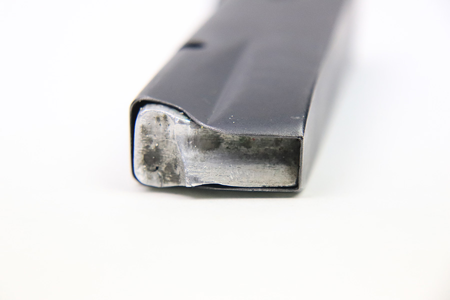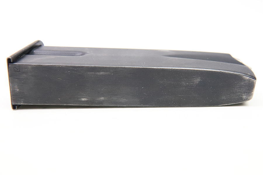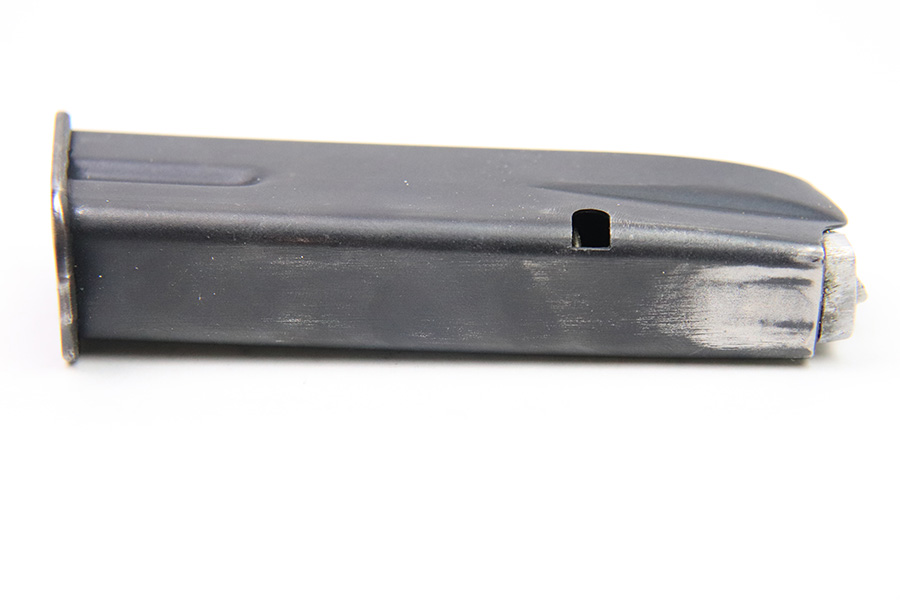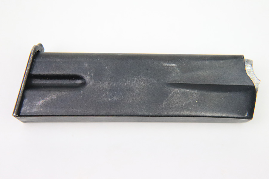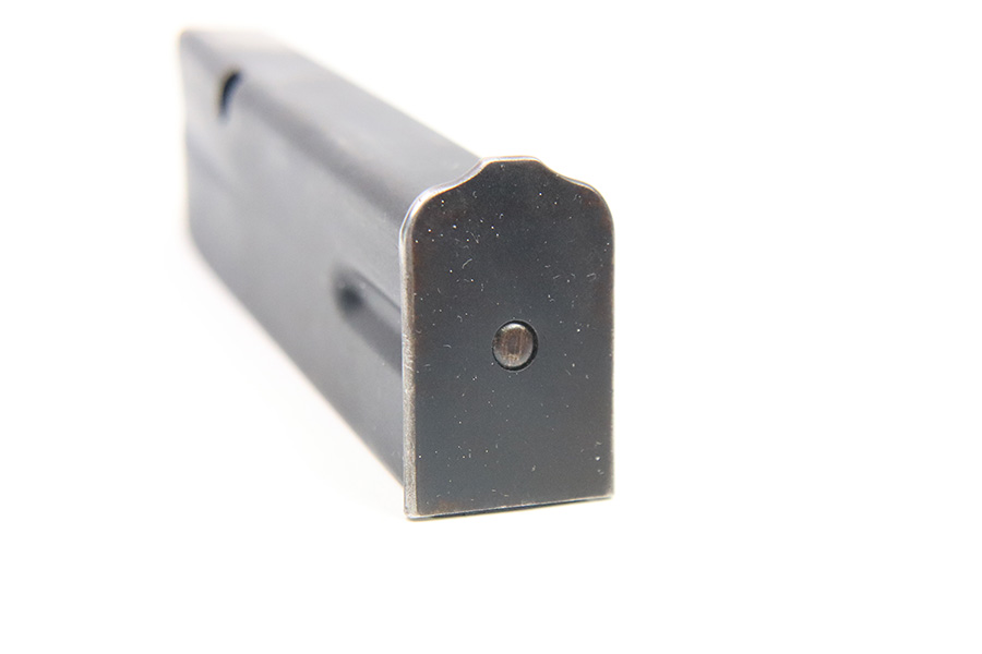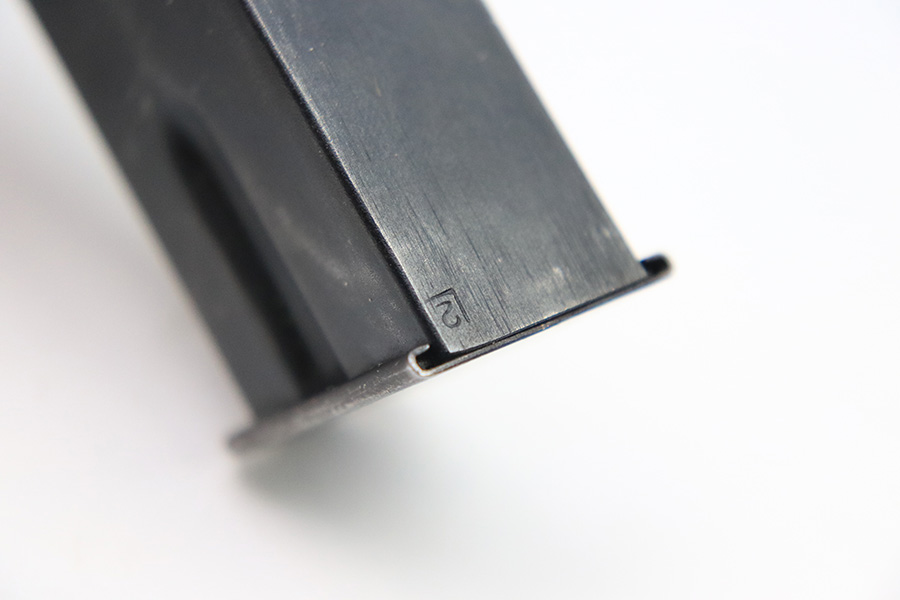 12/6/22 – This is a commercial Hi Power magazine. Based on the style of baseplate and finish, this is likely a post WW2 production between 1960-1980. No markings or stamps except for a small “2” proof stamp on the spine. The spring is strong and fully functional. Great overall condition.