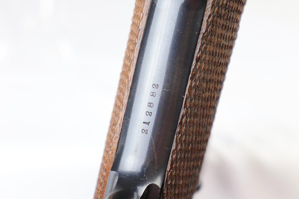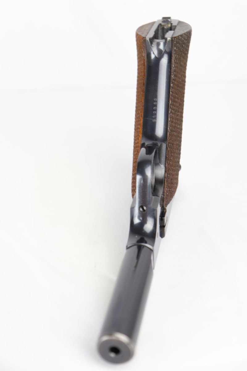 10/18/18 – This is a very nice and all original Hi-Standard Model H-D Military. The original bluing rates at about 94-95% with muzzle wear on each side, and some browning/thinning of the right side slide. Excellent straps and grips. Terrific bore.