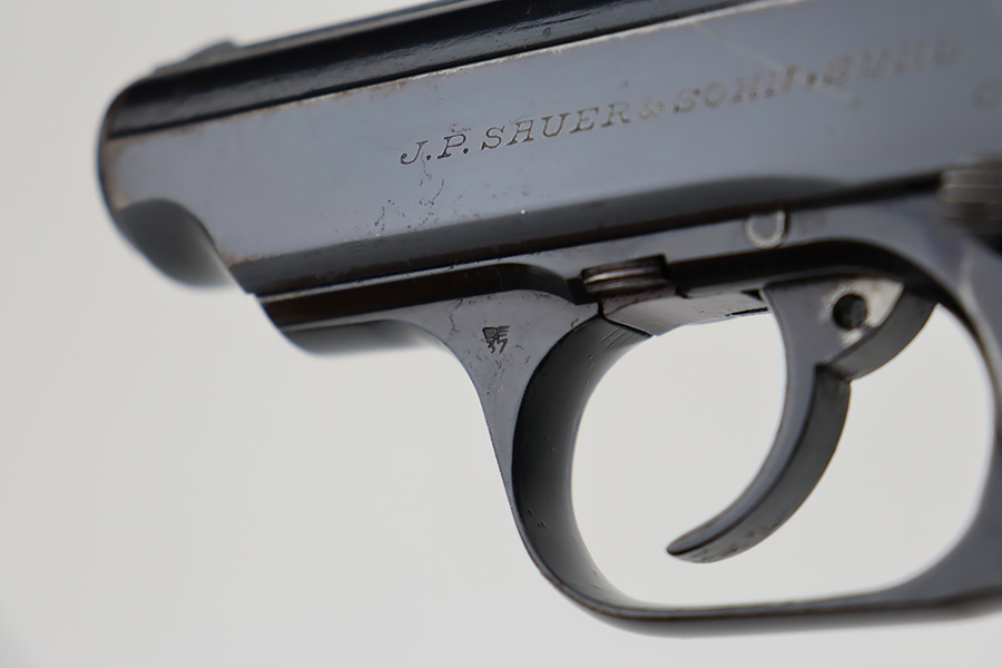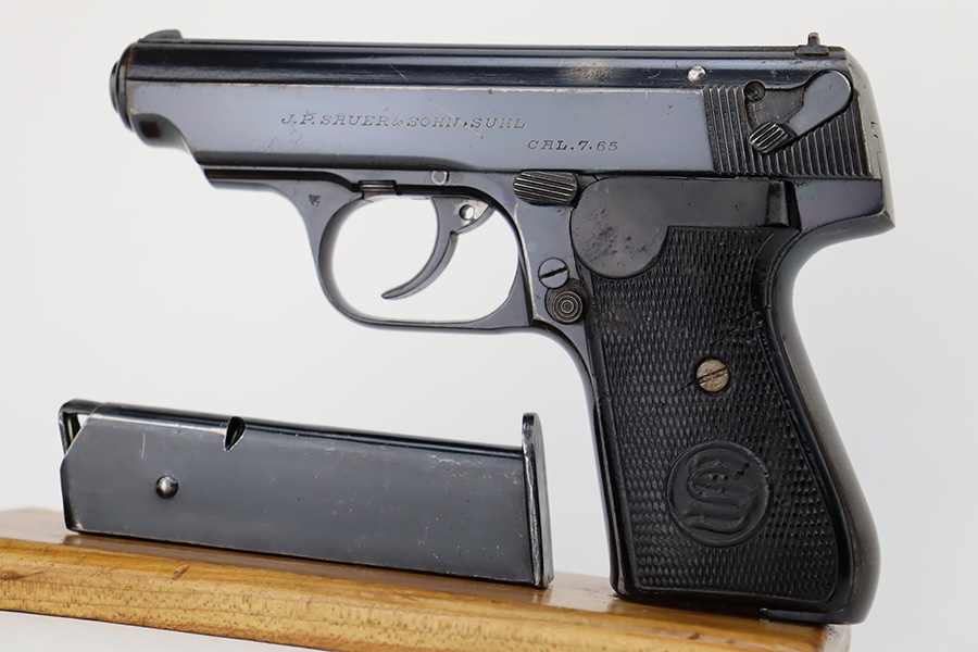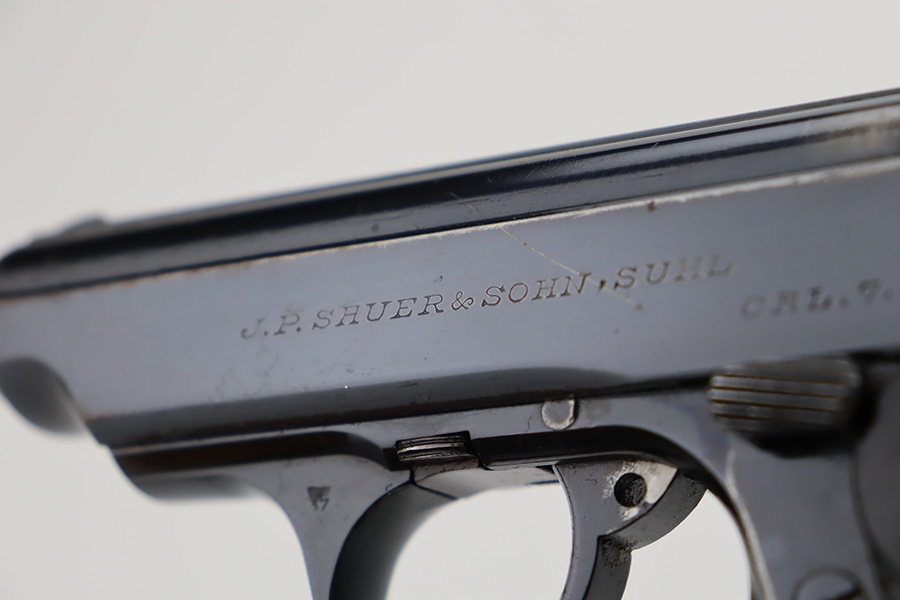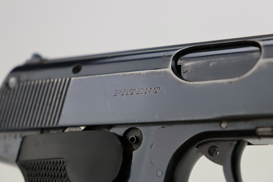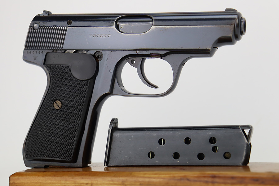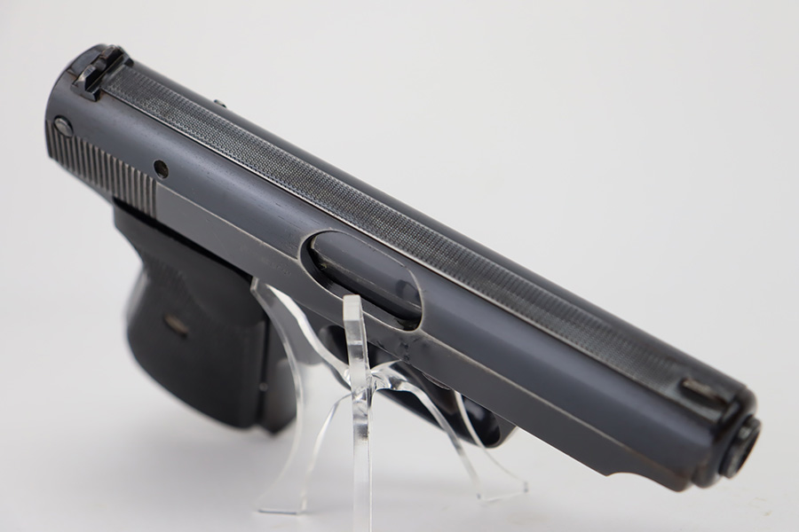10/11/23 – This is an early, high polish Sauer 38h issued to the Nazi military during WW2. All matching with the proper “Eagle 37” military acceptance proof. The bluing rates roughly 80% with the majority of wear on the back strap and on the tang. There is also general minor high edge wear, some pin-pricking around the muzzle, and a scratch on the left side of the slide. Fitted with period-correct black bakelite grips – crack on the left side. Comes with a reproduction magazine. Mint bore. The gun seems to be fully functional, but there is a small circular part missing from the right side of the frame.