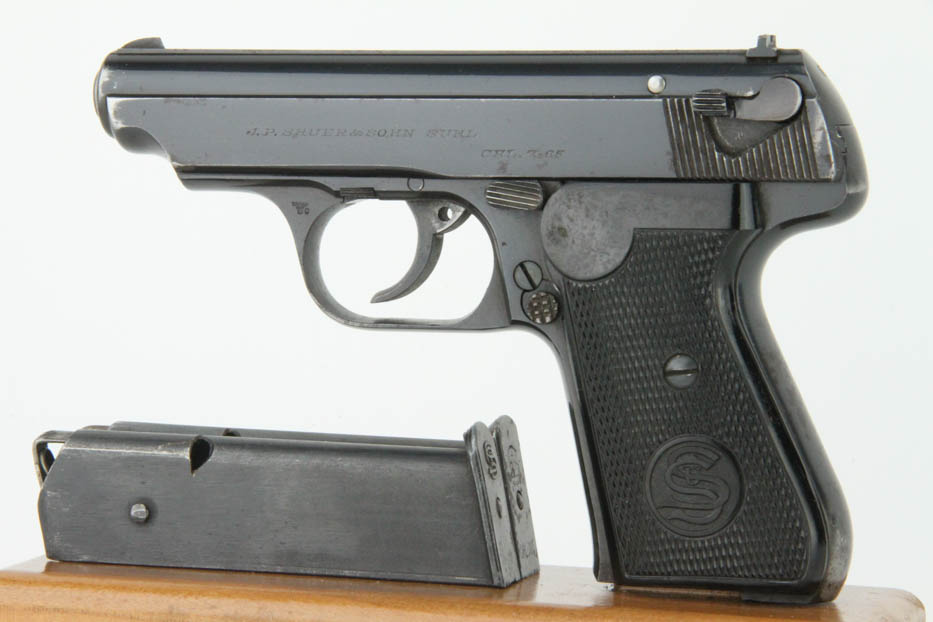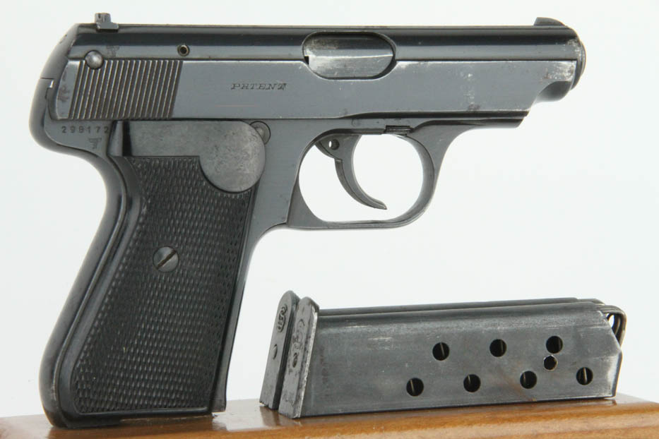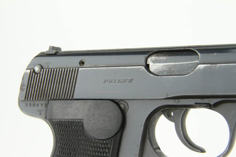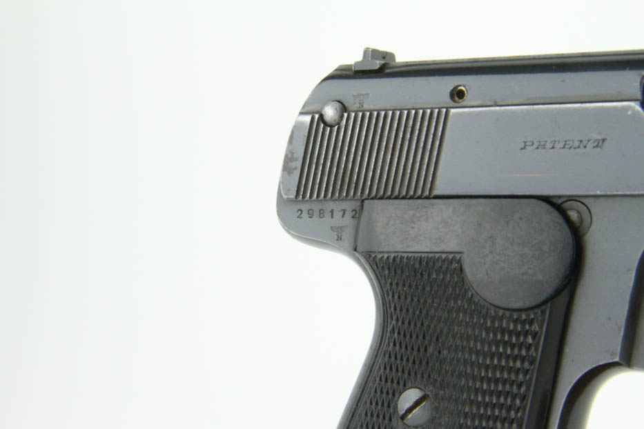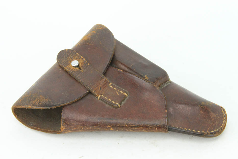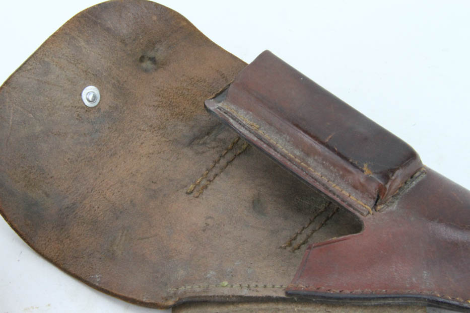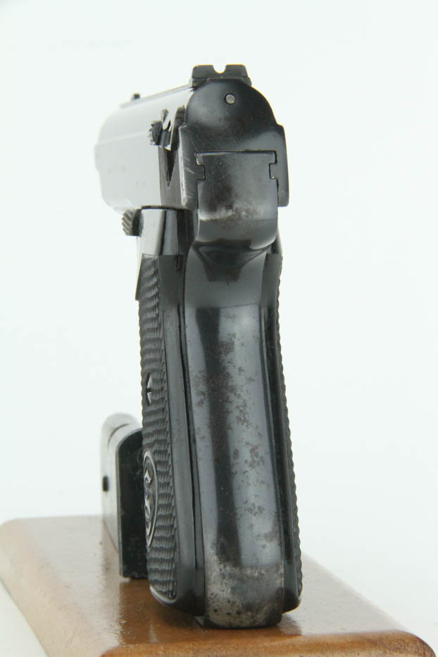 7/29/24 – This is an excellent example of a Sauer 38h issued to the Nazi police force during WW2. All matching with the proper police “Eagle C” marking on the left side of the trigger guard. This is an early variation with a high polish finish and a checkered magazine release. Its original finish rates about 96-97% with just minor muzzle and high edge wear and some spotty oxidation on the back strap. Fitted with period-correct black bakelite grips. Mint bore. It comes as a rig with two period-correct magazines and a generic tan leather holster. We acquired this rig directly from the son of the man who captured it at the end of WW2. He wrote and signed a letter detailing his fathers’ military service during WW2, how he was injured in battle, and how he came to own this piece of history.