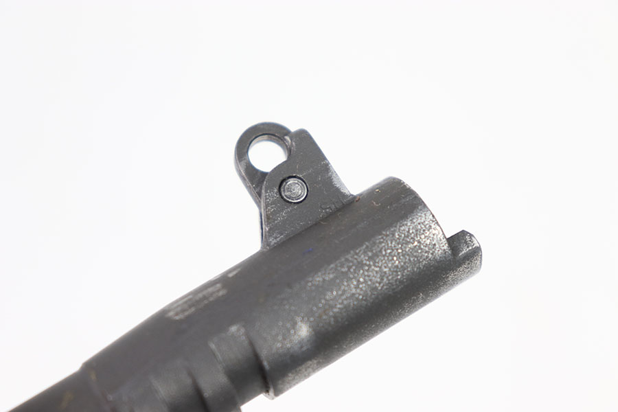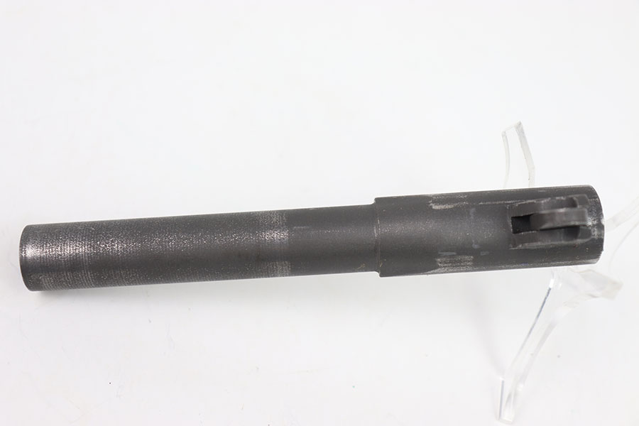 5/31/24 – This is an original High Standard – Remington Rand/Ithaca 1911 barrel. This barrel is marked “HS” on the right side of the lug indicating High Standard and a “P” on the other which indicates it is either a Remington Rand or an Ithaca. This barrels dull finish is in great condition with only a few minor wear marks throughout mainly around the muzzle of the barrel. The bore is a 8/10, very clean with nice rifling. The barrel comes with a pin and link.