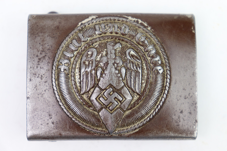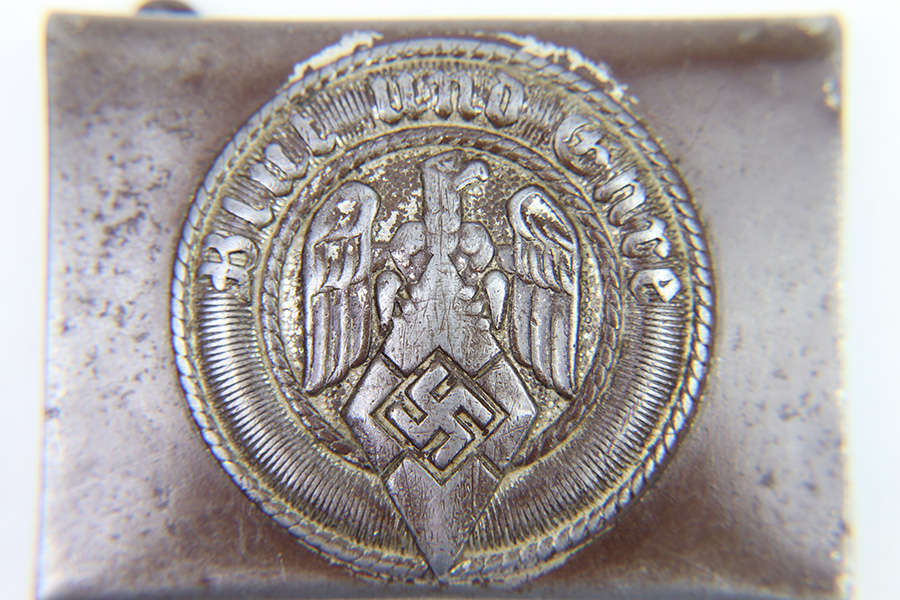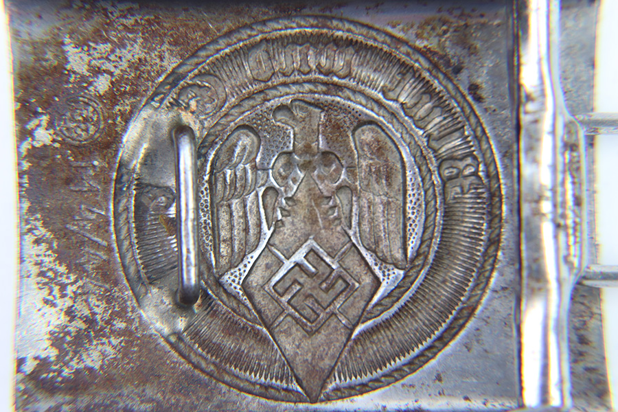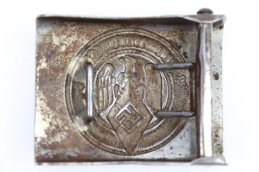 9/17/22 – This is an original Hitler Youth belt buckle from WW2. The buckle is somewhat worn with surface patina throughout as shown. The interior is RZM maker stamped with a clearly visible marking. No dents, rust or pitting.