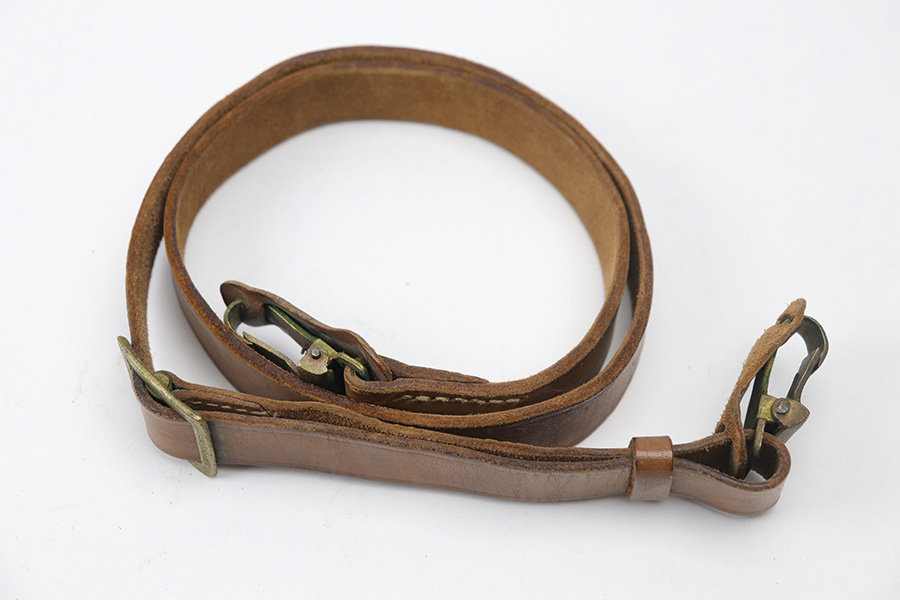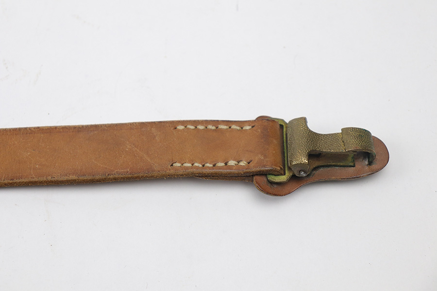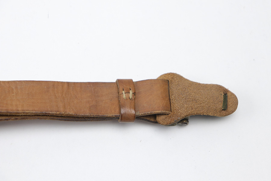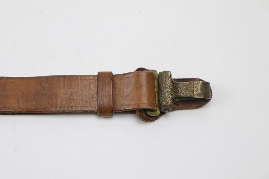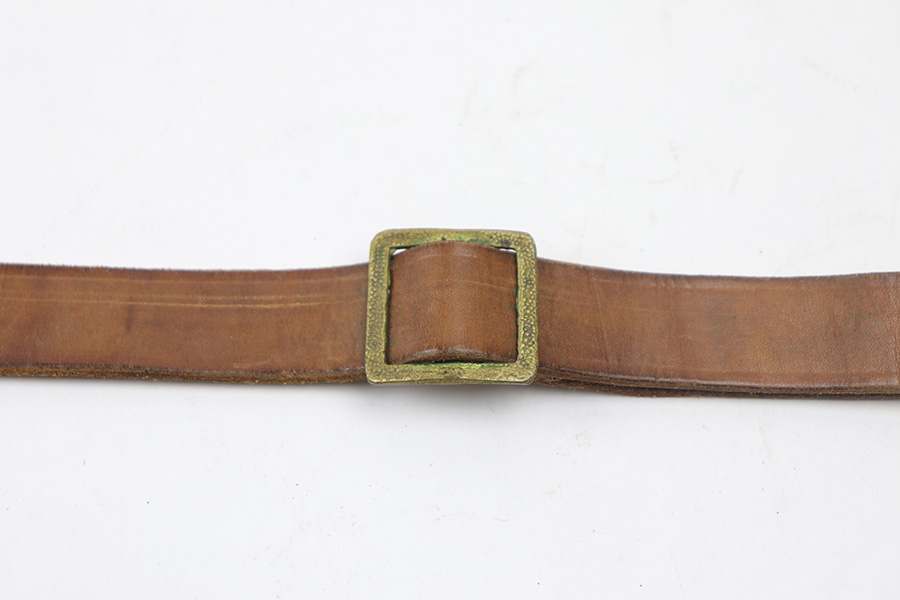 11/2/21 – This is a leather shoulder sling for a WW1 or WW2 era pistol shoulder holster. The sling is difficult to date, as there is no maker marking or date stamp. The style is similar to that of other WW2 era shoulder slings / holsters we’ve had. The leather is in great shape, and the hooked hinges are fully functional with mild patina. Measures about 37 inches long.