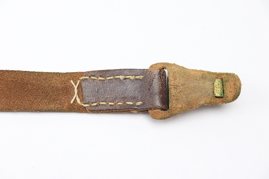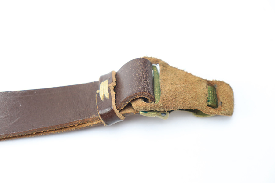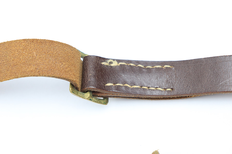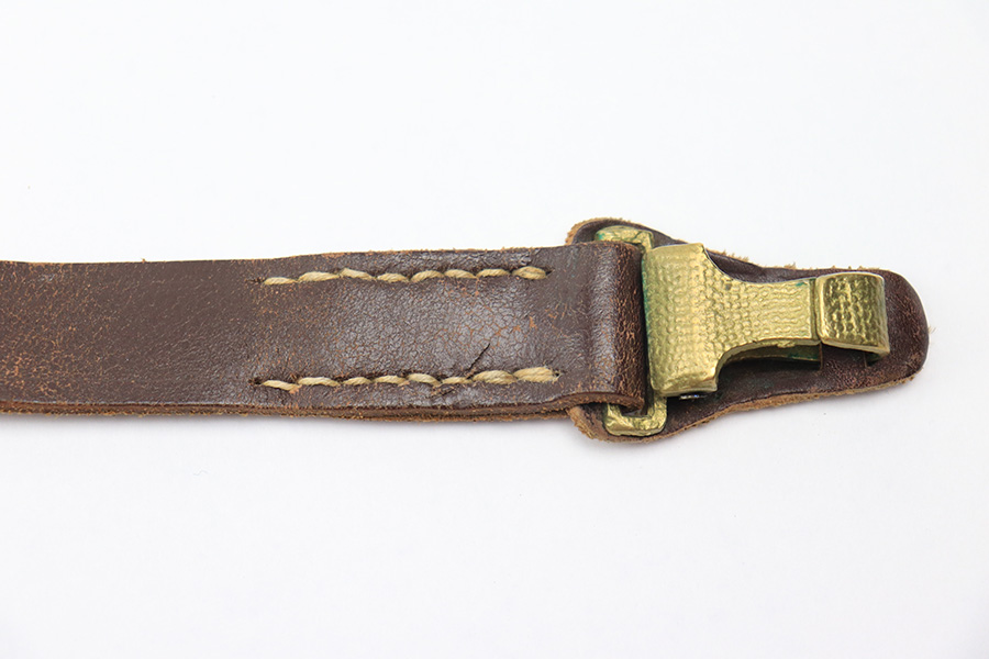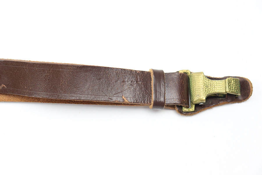 12/9/21 – This is a leather shoulder sling for a WW1 or WW2 era pistol shoulder holster. The sling is difficult to date, as there is no maker marking or date stamp. The style is similar to that of other WW2 era shoulder slings / holsters we’ve had. The leather is in great shape, and the hooked hinges are fully functional with mild patina. Measures about 36 inches long.