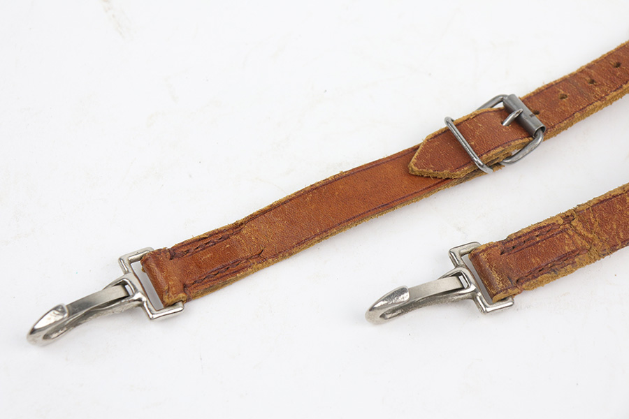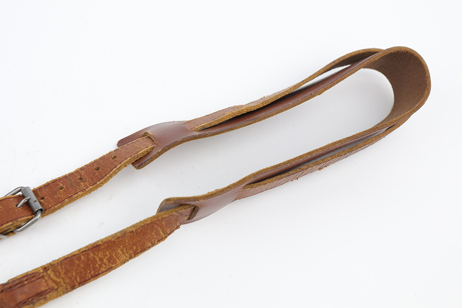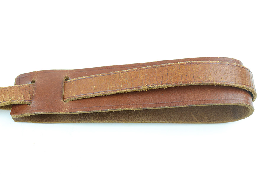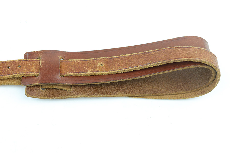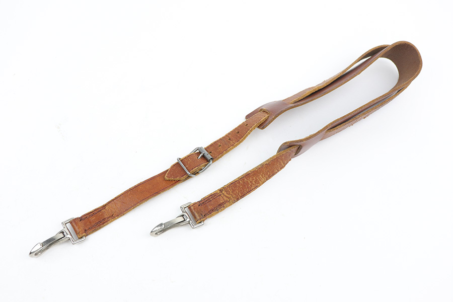 8/30/21 – This is a leather shoulder strap for any holster with eyelets that would accommodate this strap. Overall length is 27.5 inches. The leather portion is about 24.5 inches long. Excellent condition with functional clips on each end.